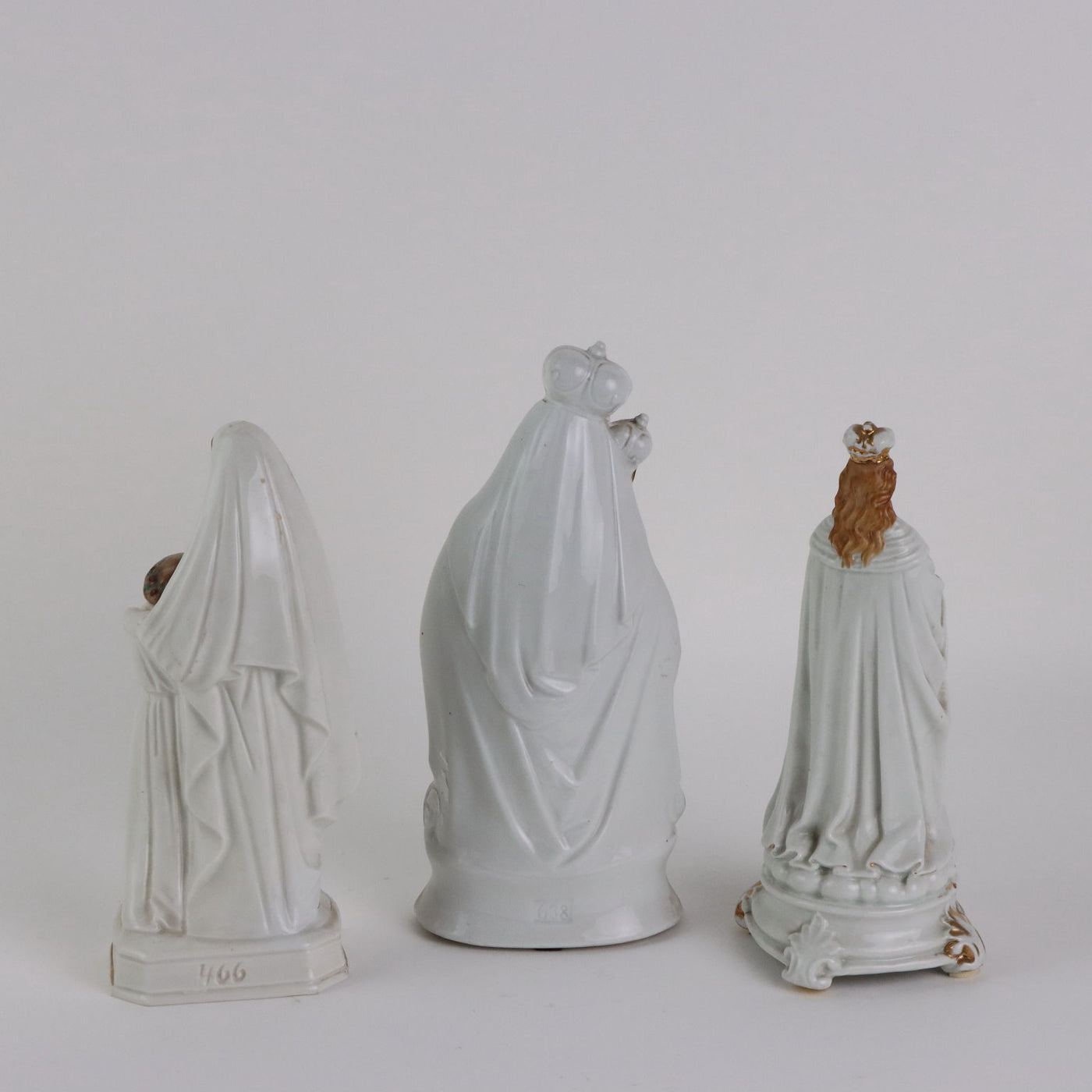 Group of thirteen religious figures in porcelain and biscuit with polychrome and gold decoration. The group is composed of figures of the Virgin Mary, Madonna with child, Jesus, Saint Joseph, Saint Anthony and Angel. collector's articles, ancient objects, porcelain, ceramics.