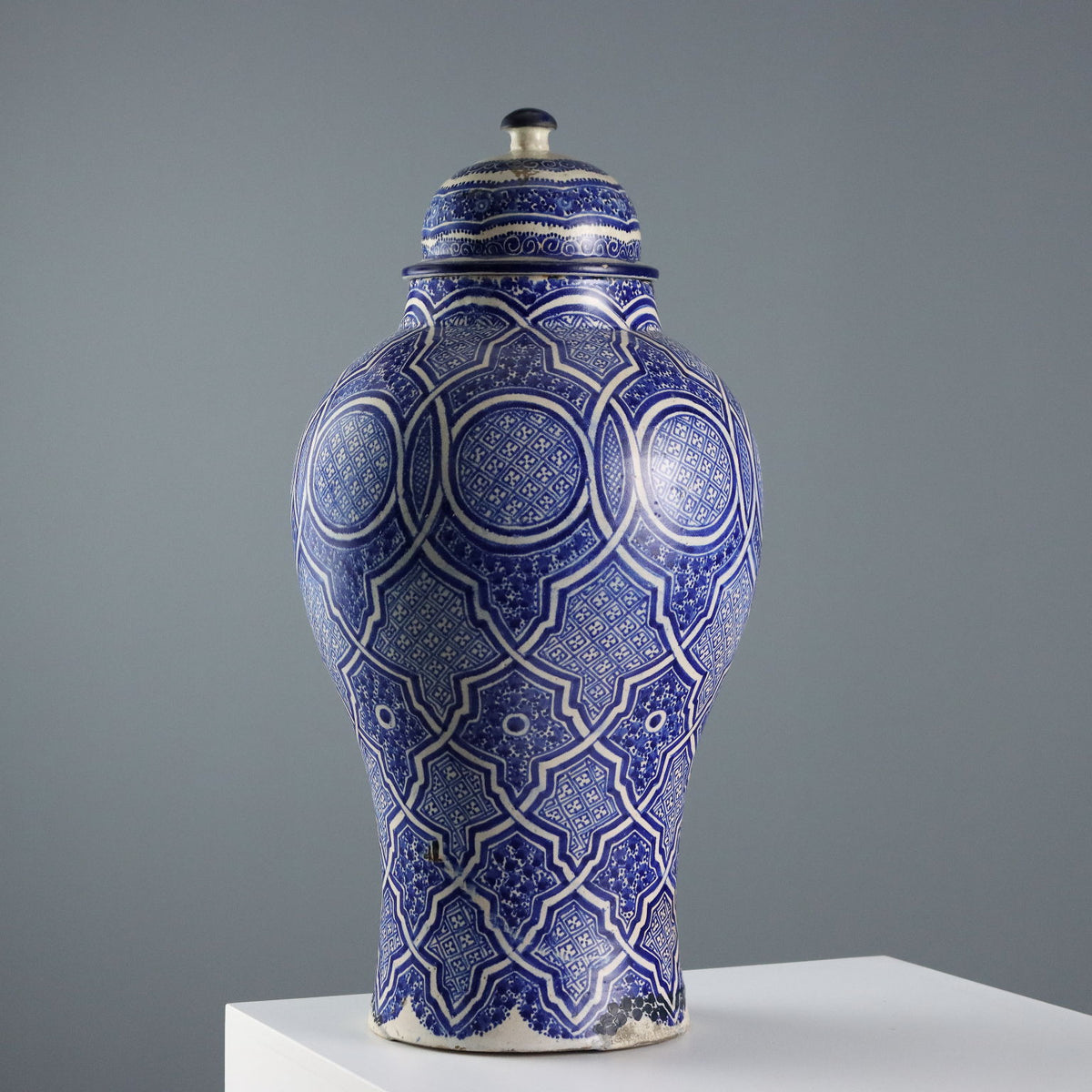 Antique Vase Majolica-Threated Ceramic Geometric Morocco XX Century
