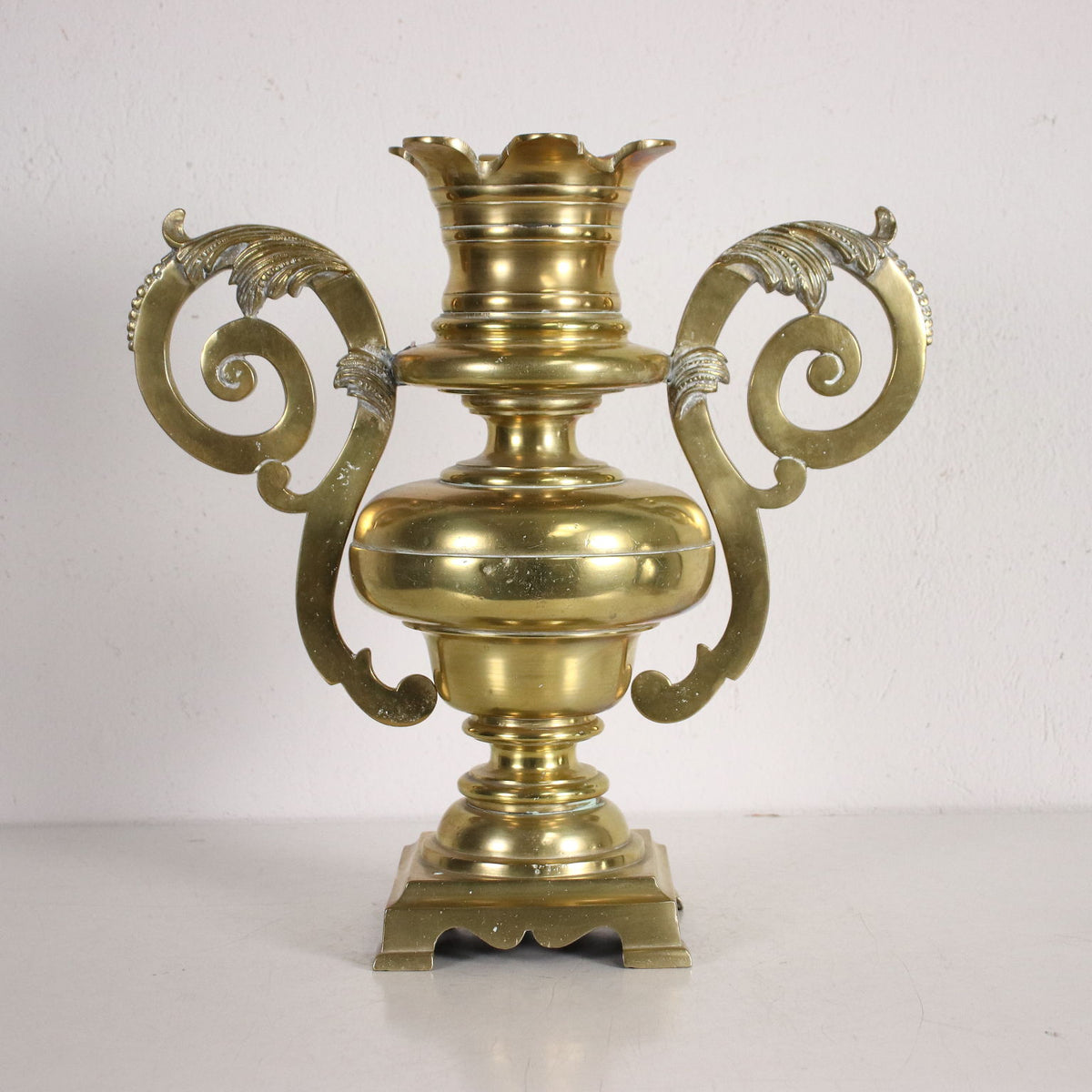 Vase in solid gilded brass with large scroll handles. Vase, jar, bowl, container.