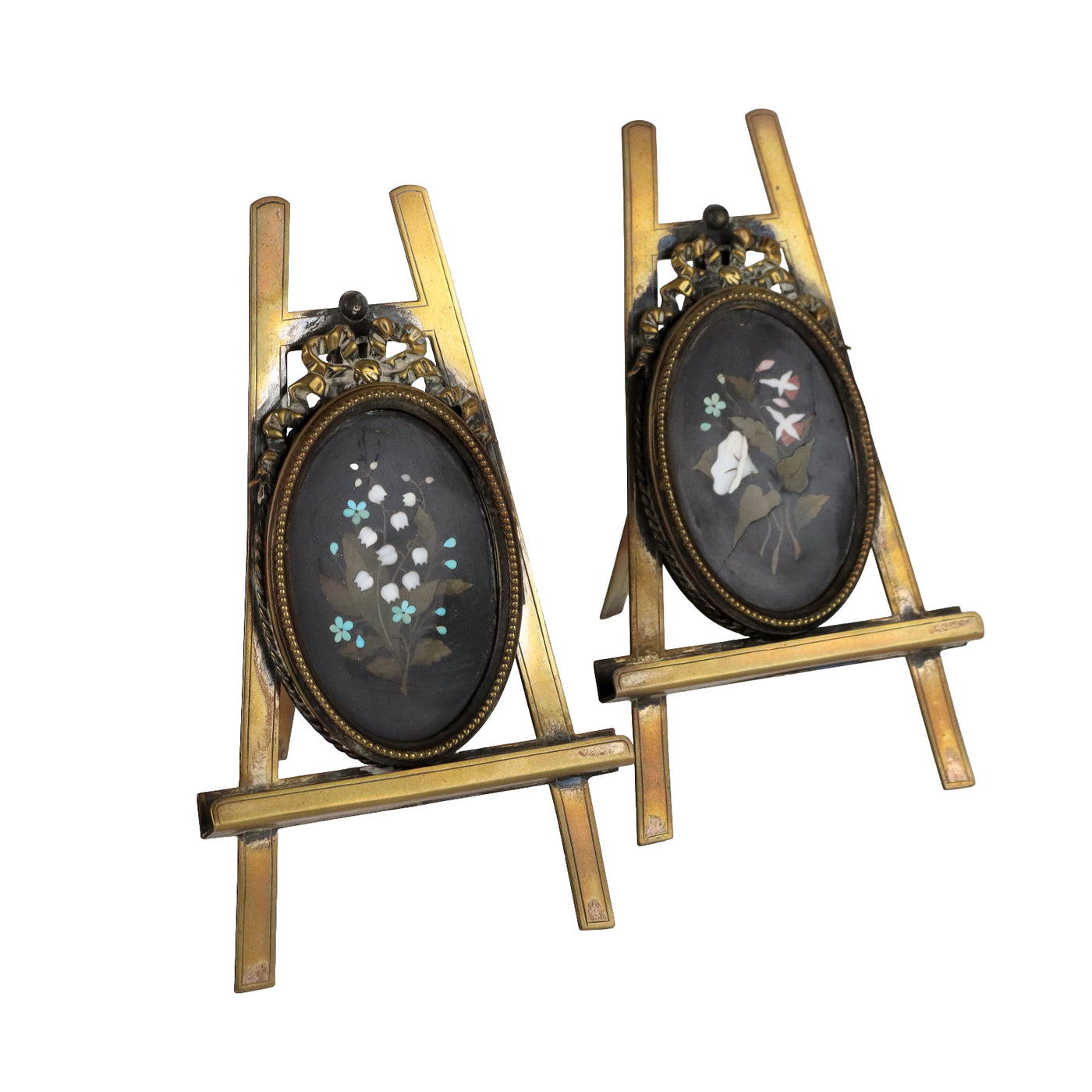 Pair of Ancient Portrait Holders Late XIX Century Bronze Hard Stones E