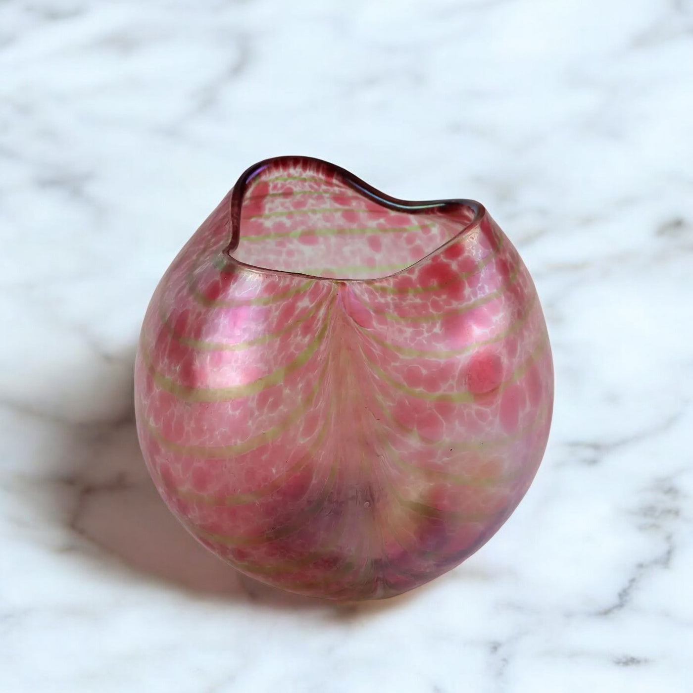 Polychrome glass vase with iridescent surface. Manufacture in the Loetz manner - Austria. Vase, jar, bowl, container.