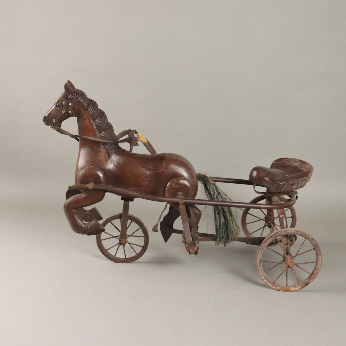 Iron carriage with walnut wood horse. Ancient objects, , collector's articles, candle-holder.