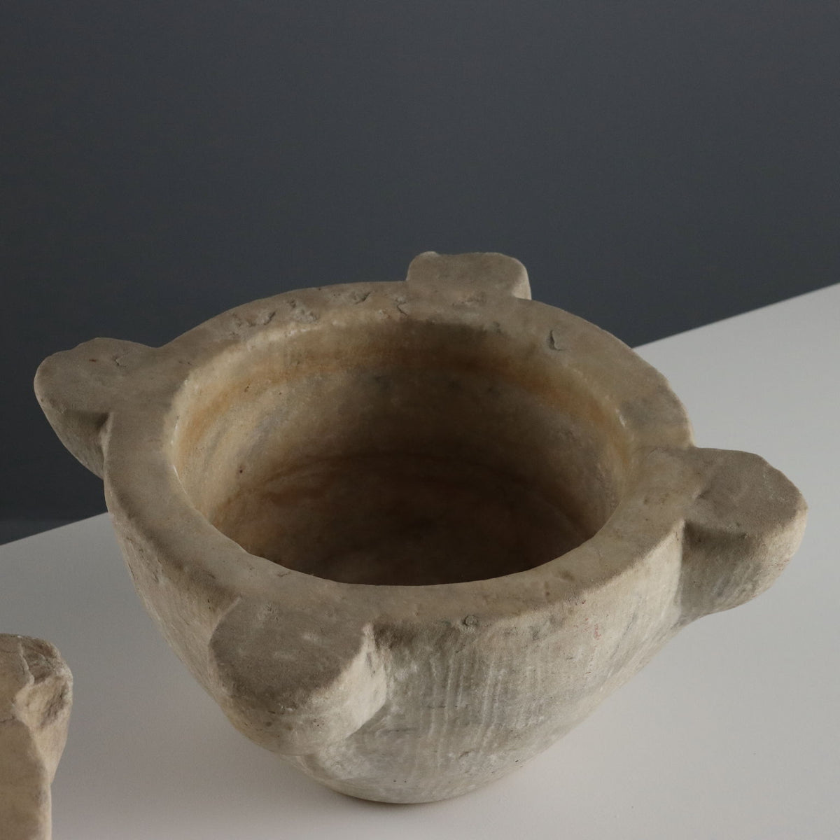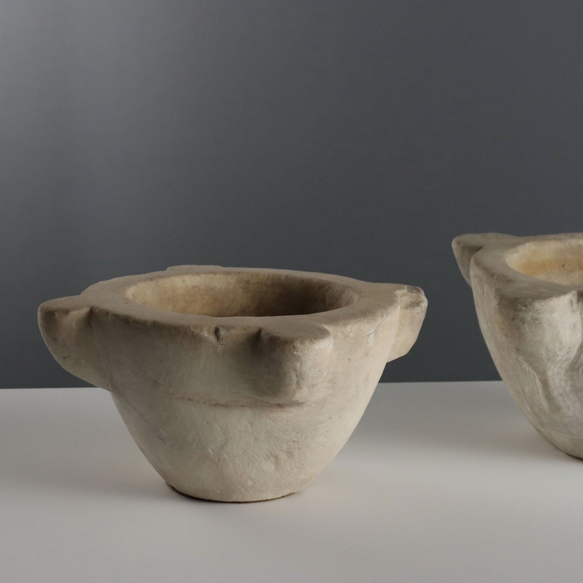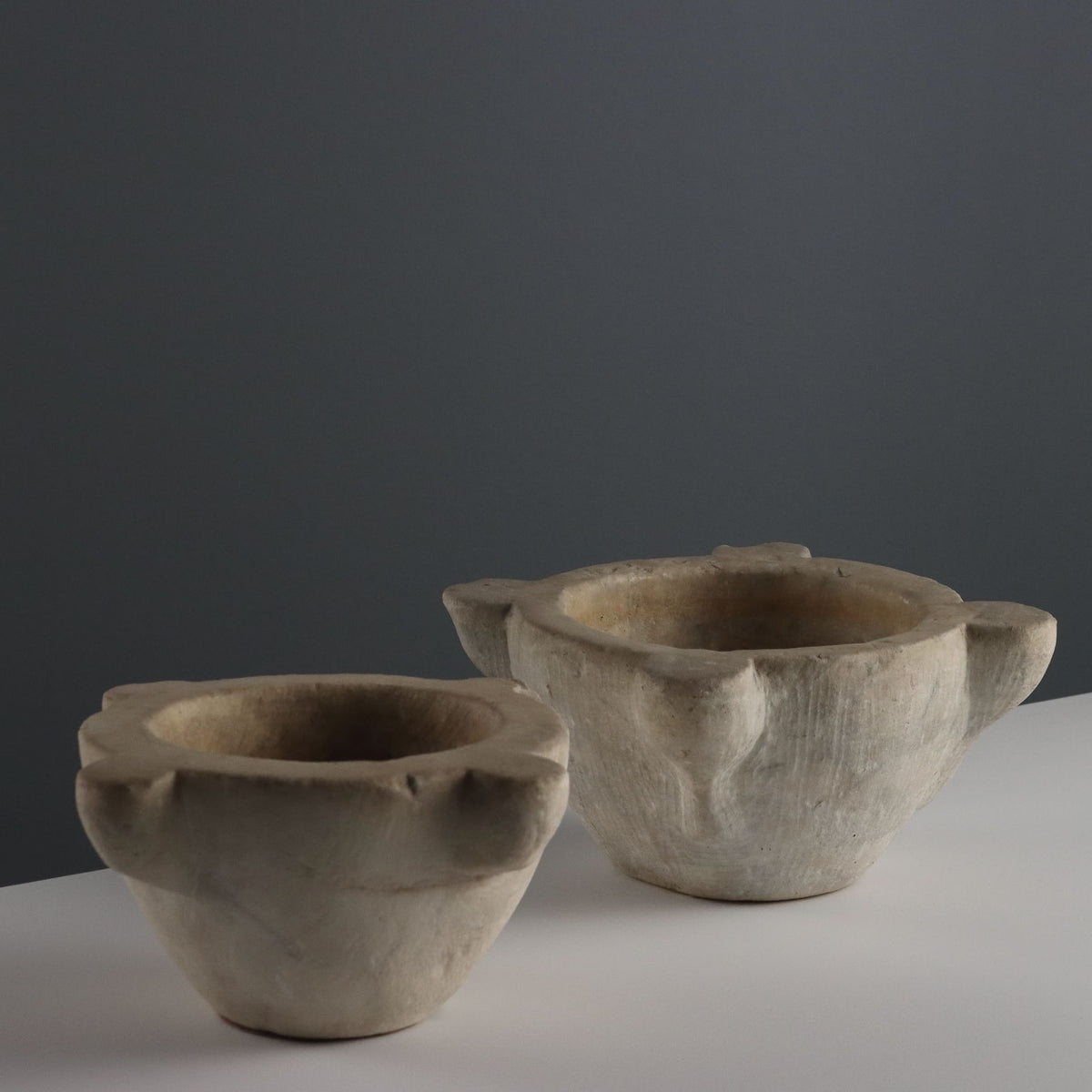 Pair of stone mortars of slightly different size. Ancient objects, , collector's articles, candle-holder.