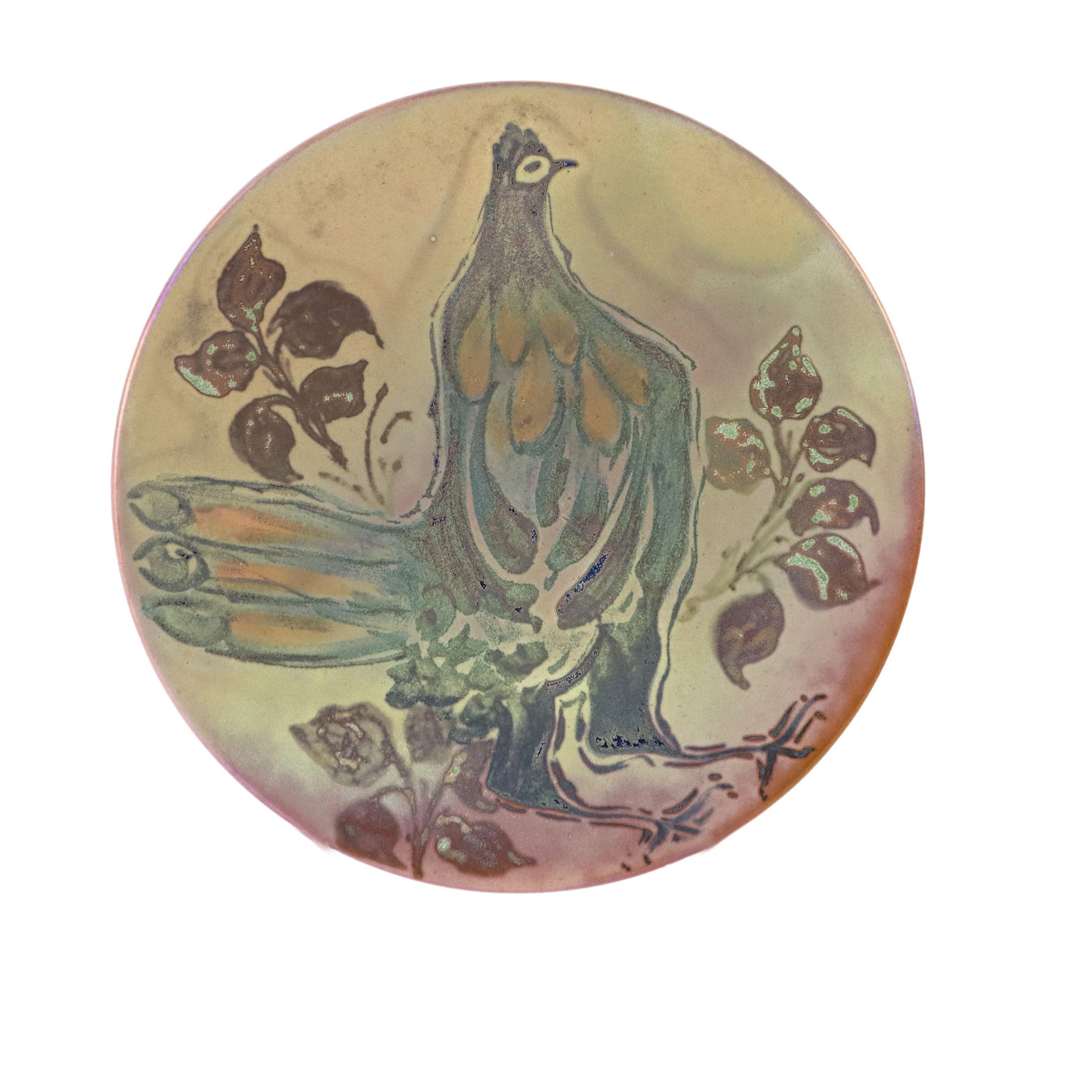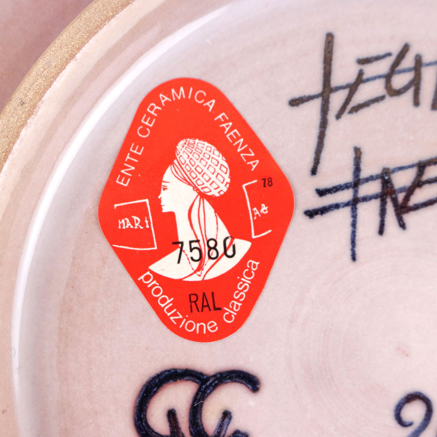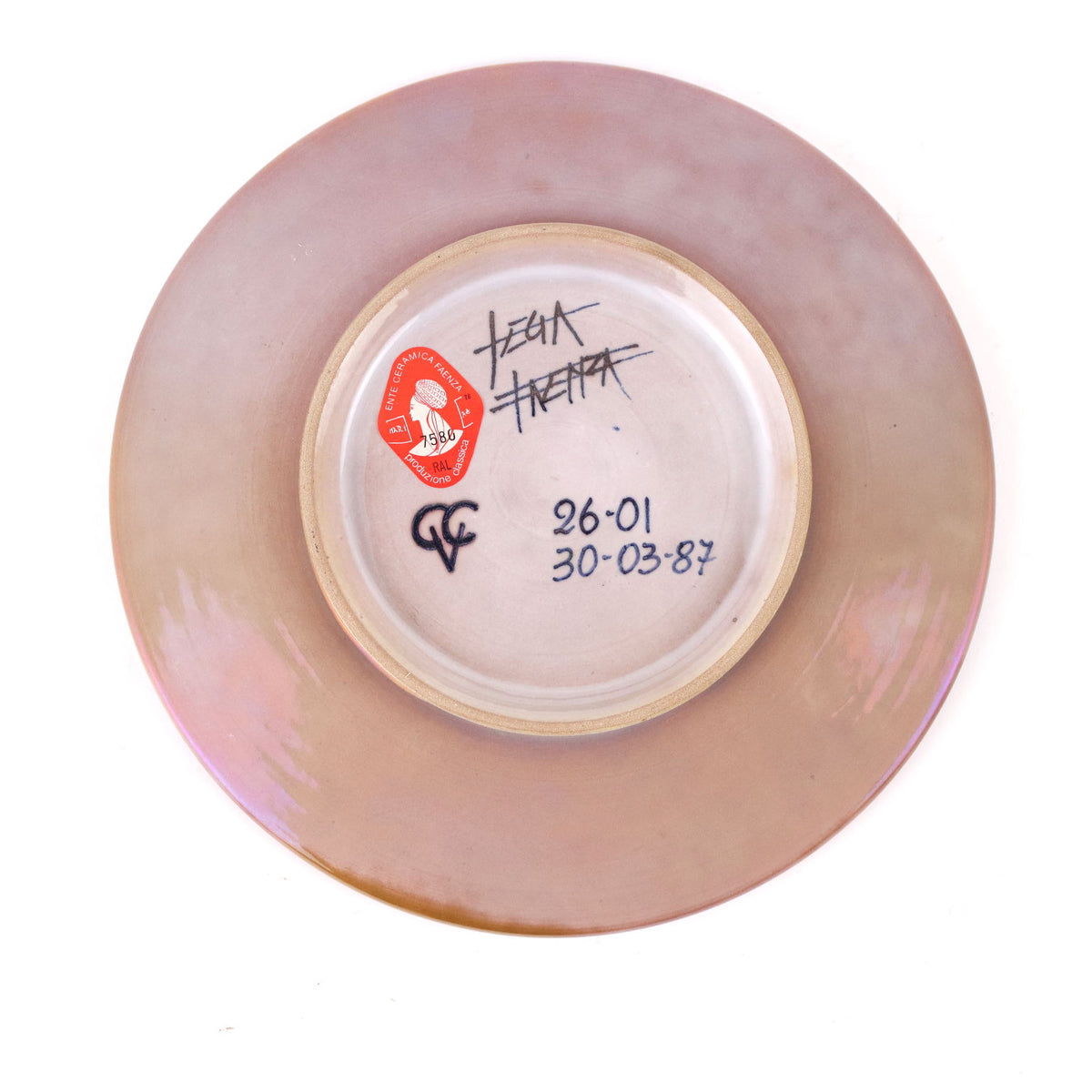 Ceramic plate with polychrome decoration. Brand of the manufacture on the reverse. Vintage plates, design ceramics, design plates, vintage objects, vintage objects, 1960s articles, 1970s articles, 1930s articles, 1940s objects, 1950s objects, design articles.