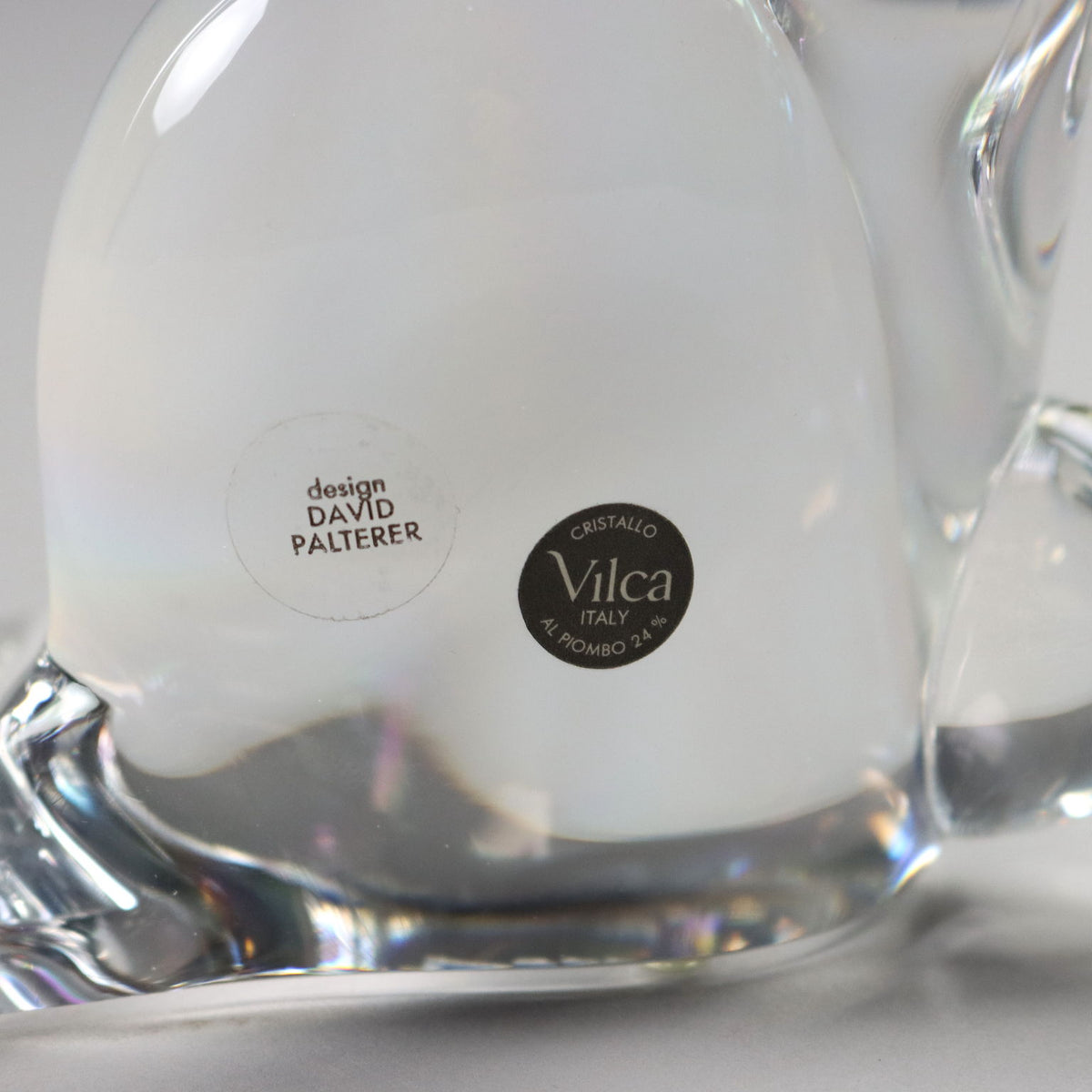 Glass sculpture by David Palterer for Vilca Ed. 41/500. Manufacturer's adhesive labels. Vintage objects, vintage objects, 1960s articles, 1970s articles, 1930s articles, 1940s objects, 1950s objects, design articles.