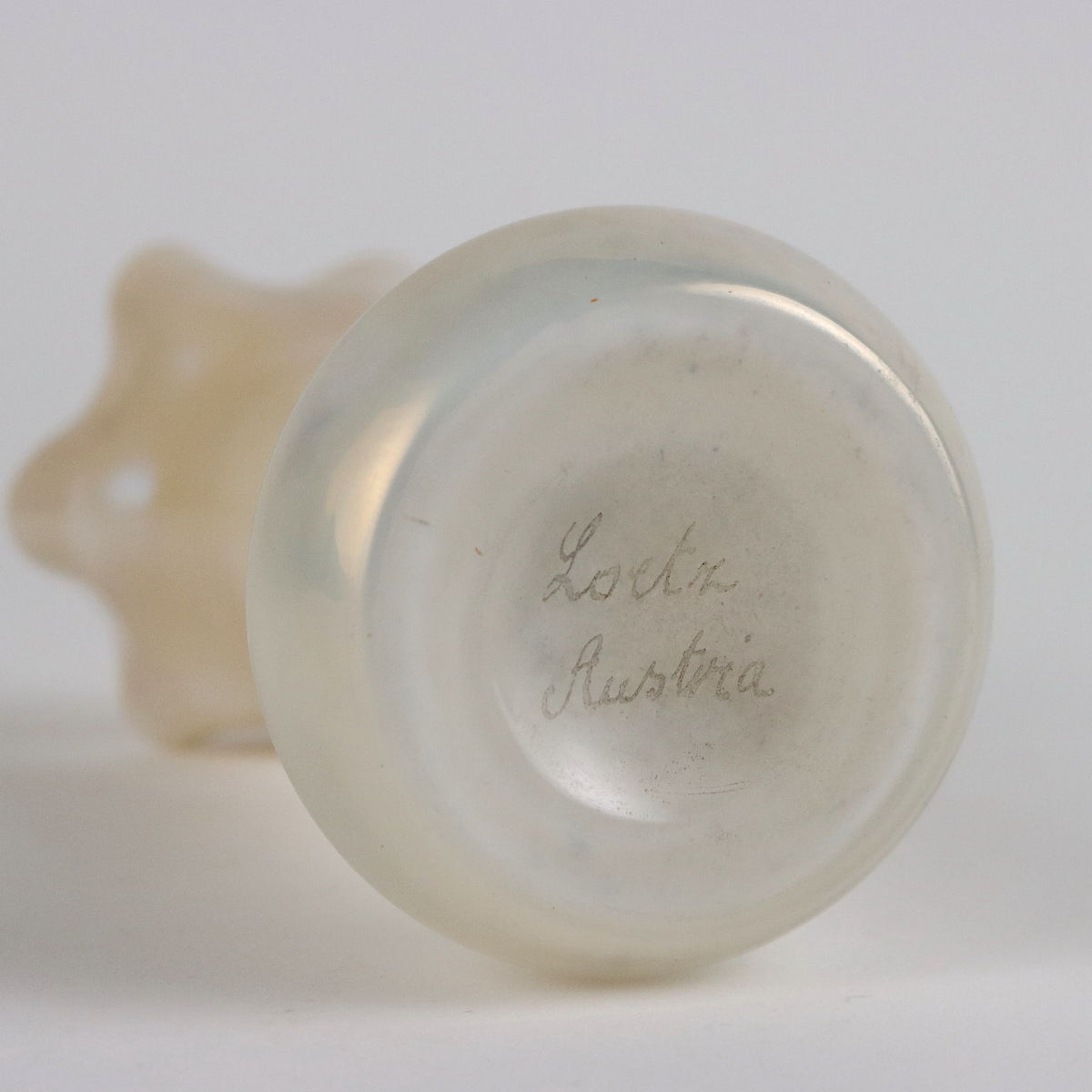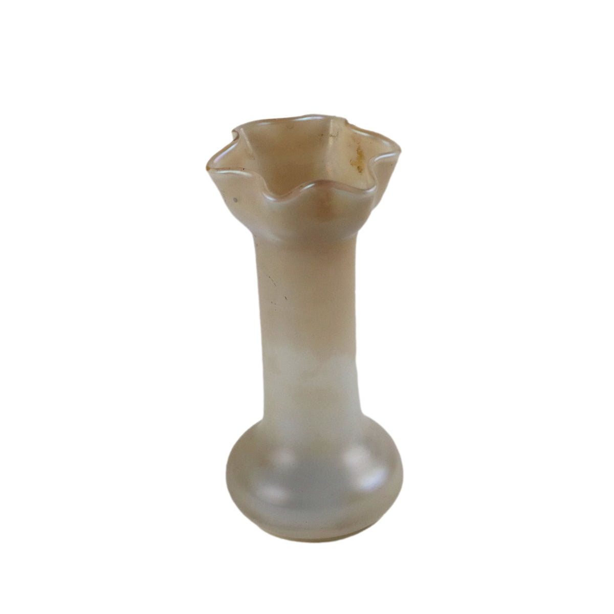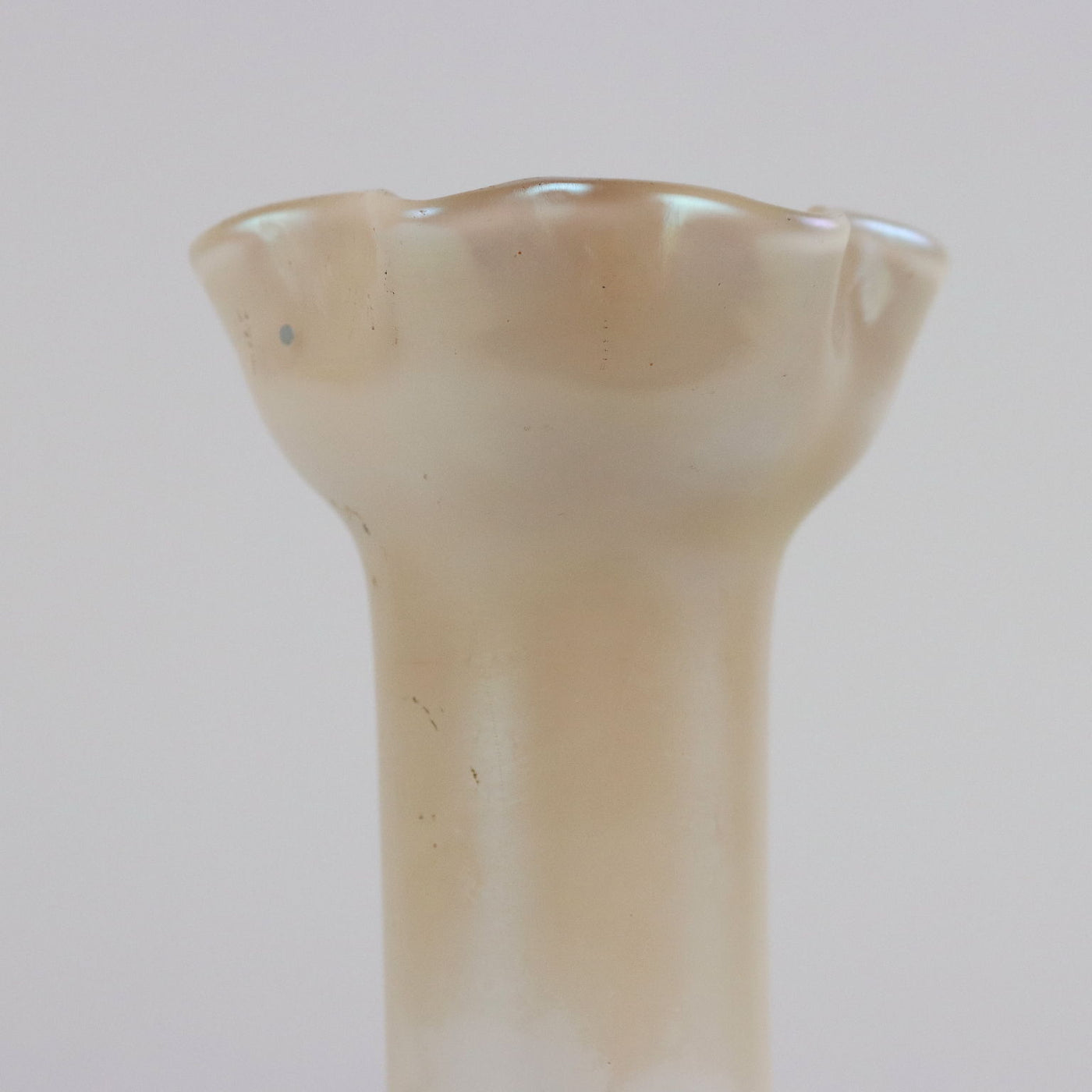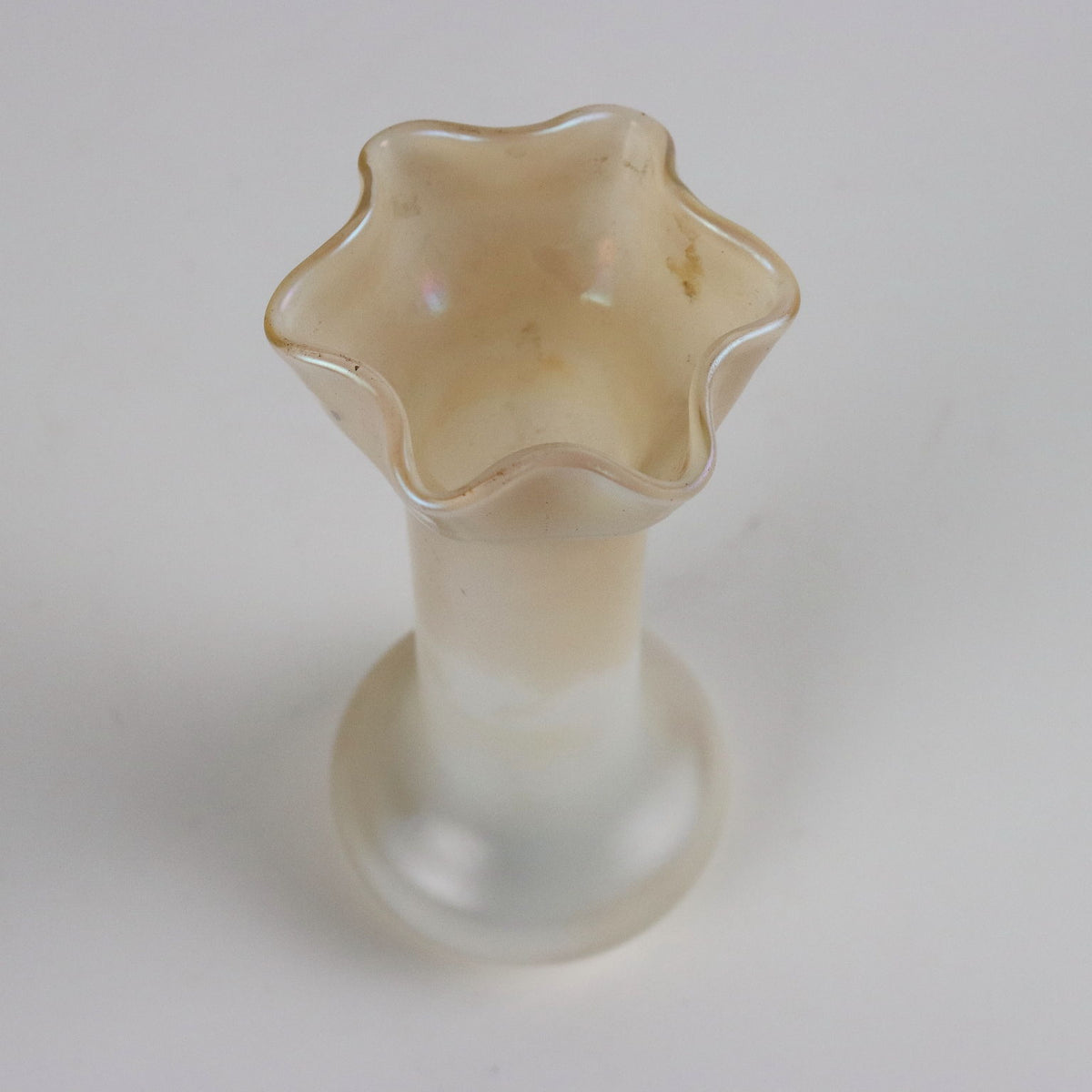 Glass vase with iridescent surface. Under the base there is a pointed signature of the manufacturer. Vintage objects, vintage objects, 1960s articles, 1970s articles, 1930s articles, 1940s objects, 1950s objects, design articles.