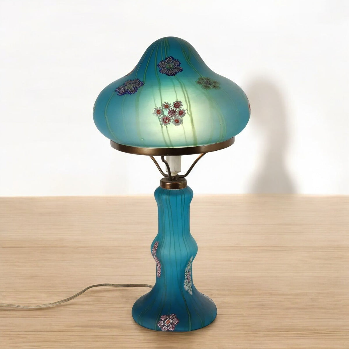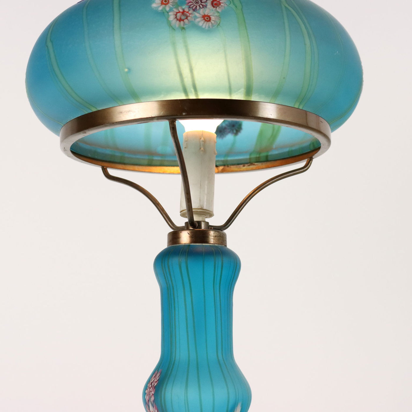 Glass table lamp with murrine inclusions. Millefiori Fratelli Toso Murano. Vintage objects, vintage objects, 1960s articles, 1970s articles, 1930s articles, 1940s objects, 1950s objects, design articles.