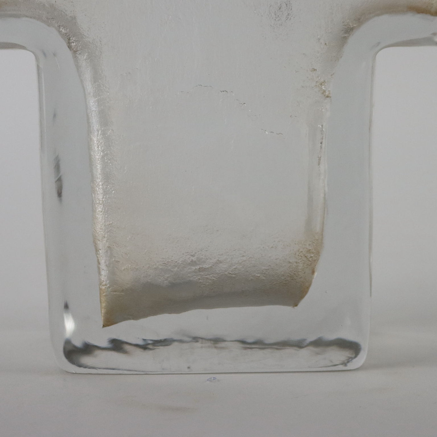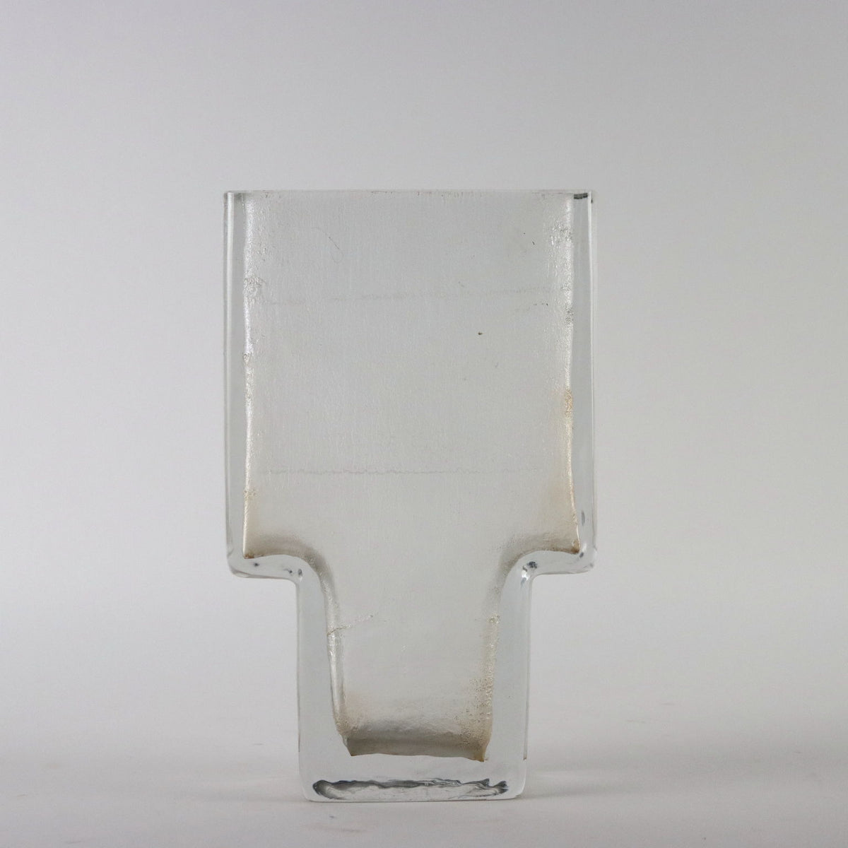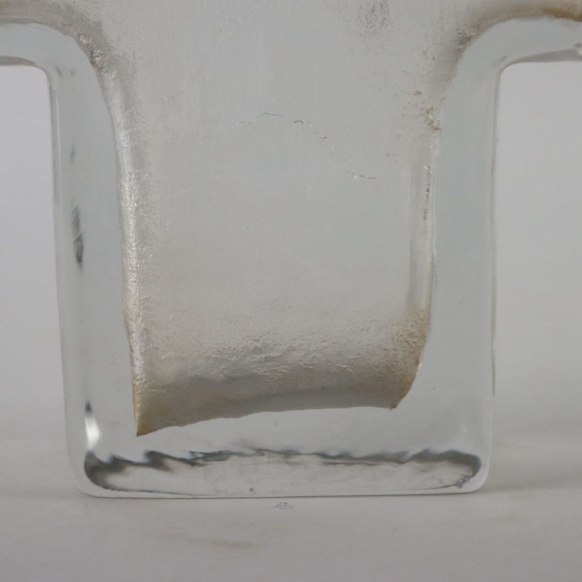 Ice effect solid glass vase. Manufacture mark under the base. Vintage objects, vintage objects, 1960s articles, 1970s articles, 1930s articles, 1940s objects, 1950s objects, design articles.