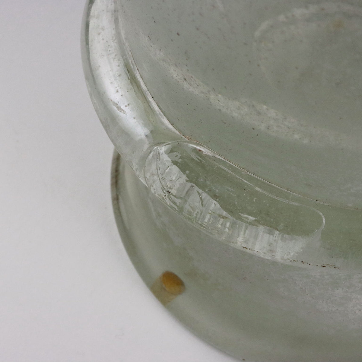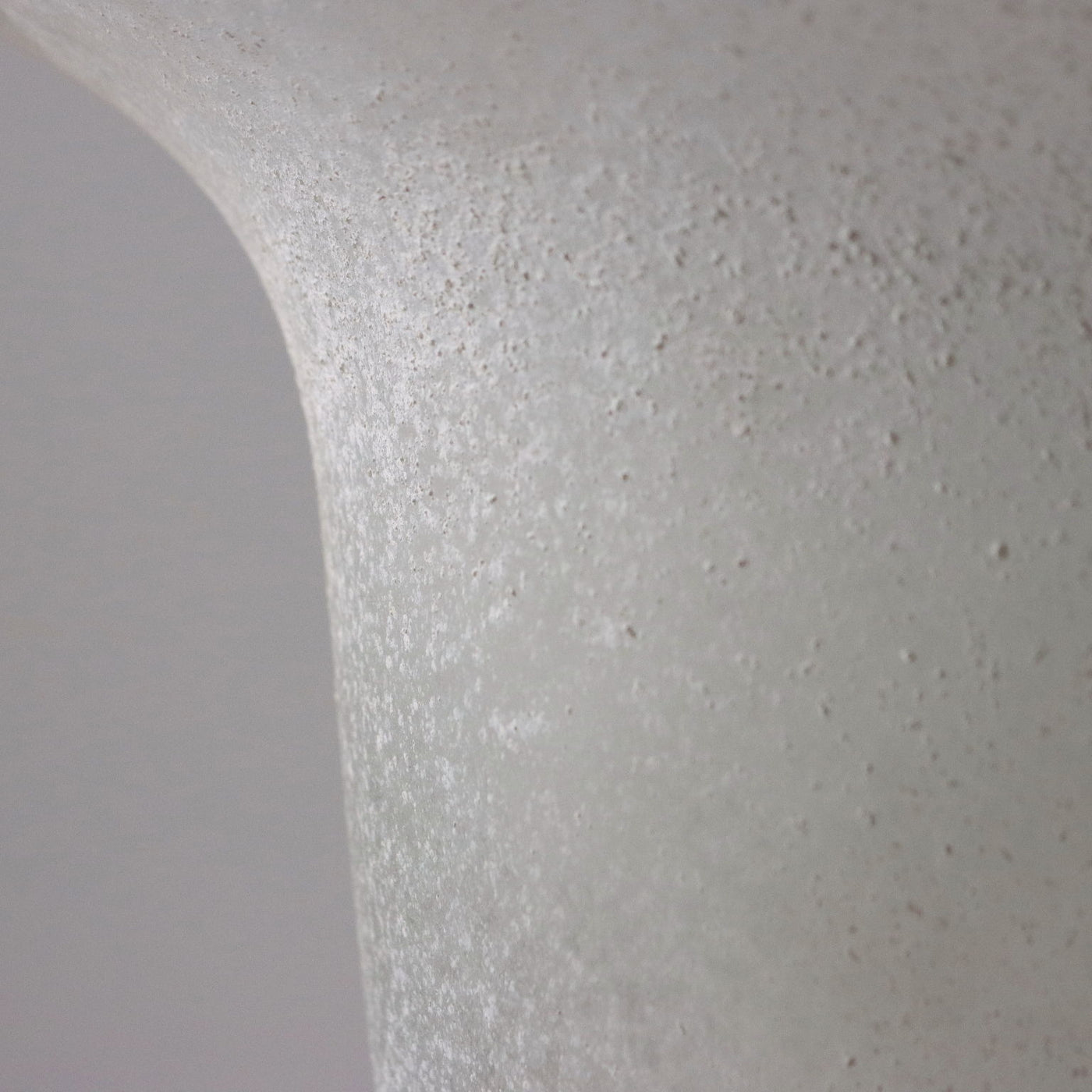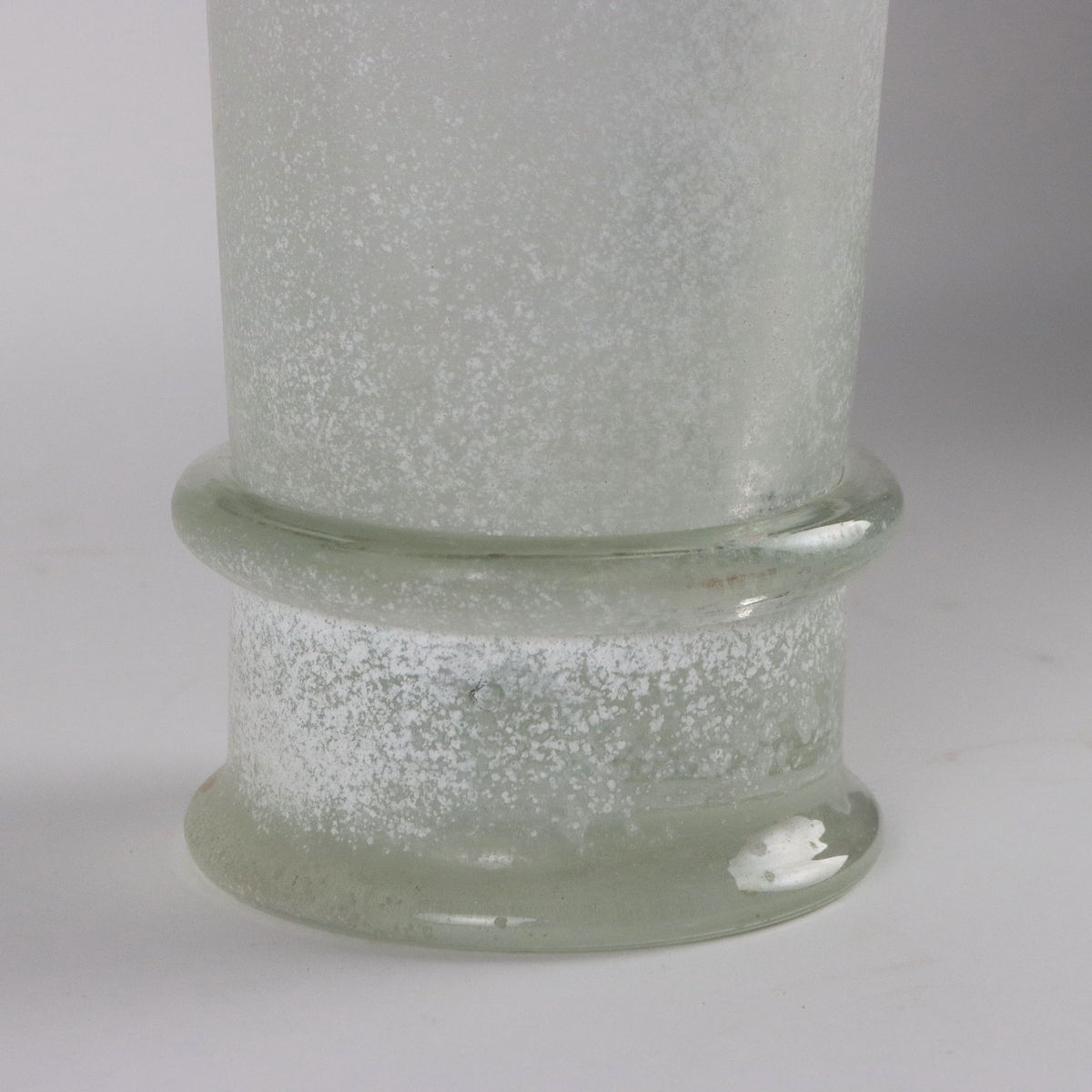 Trumpet shaped vase in white and colorless scavo glass. Tubular band applied hot at the base. Vintage objects, vintage objects, 1960s articles, 1970s articles, 1930s articles, 1940s objects, 1950s objects, design articles.