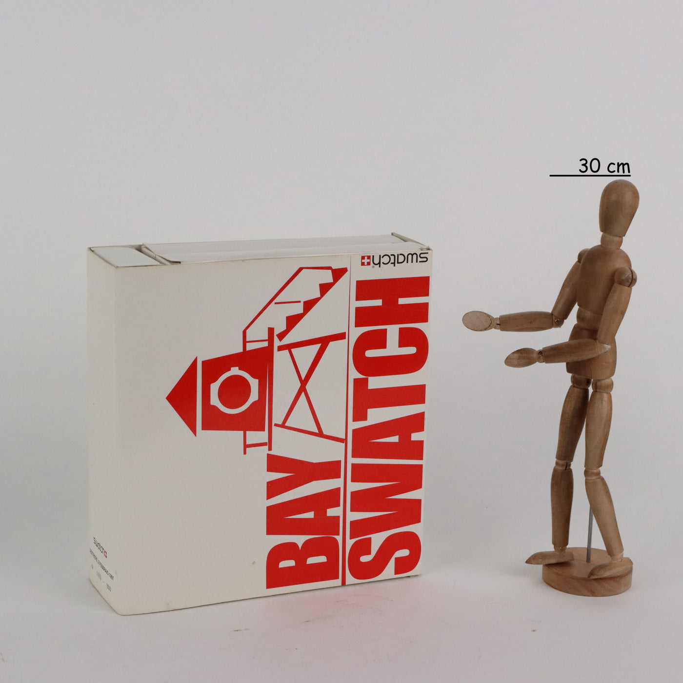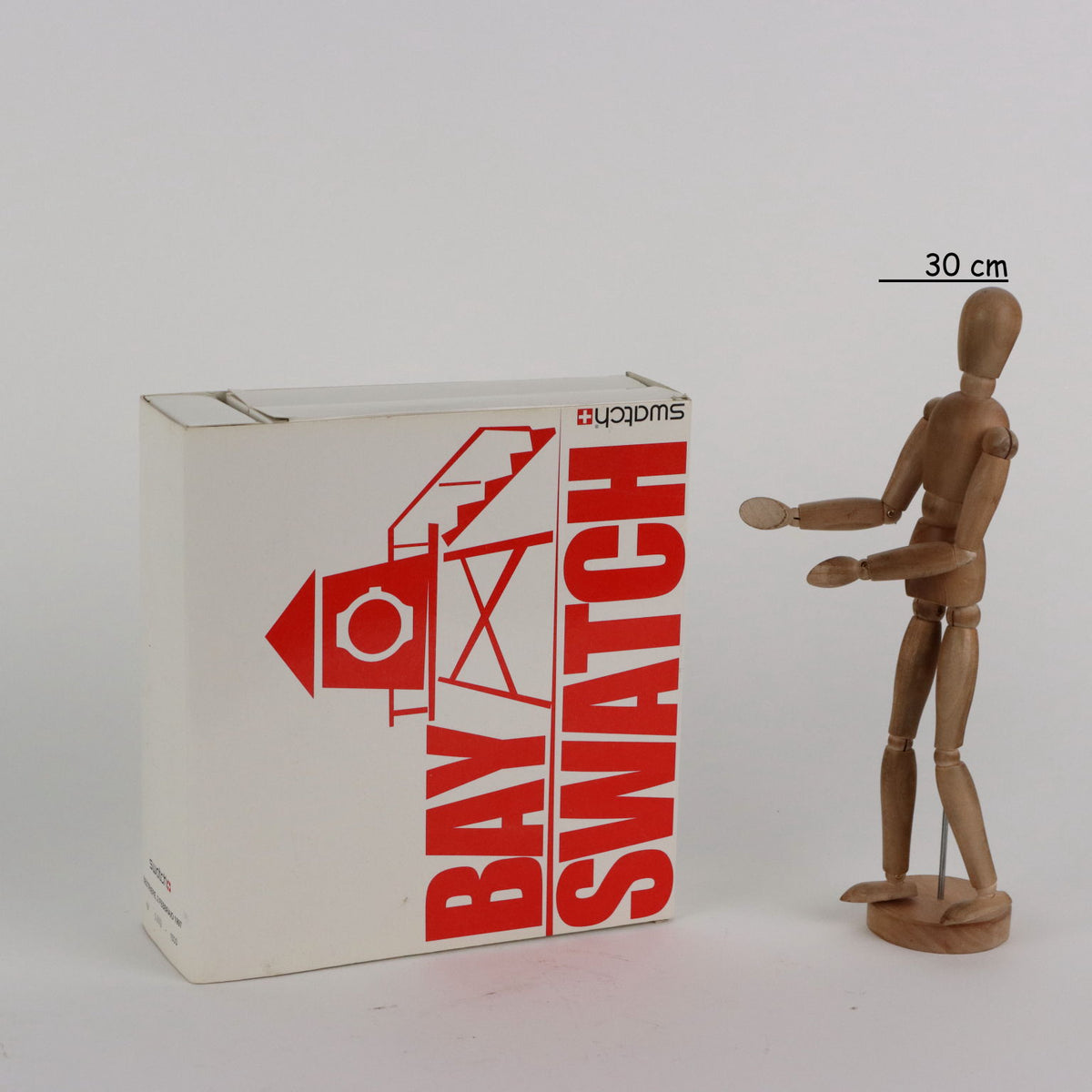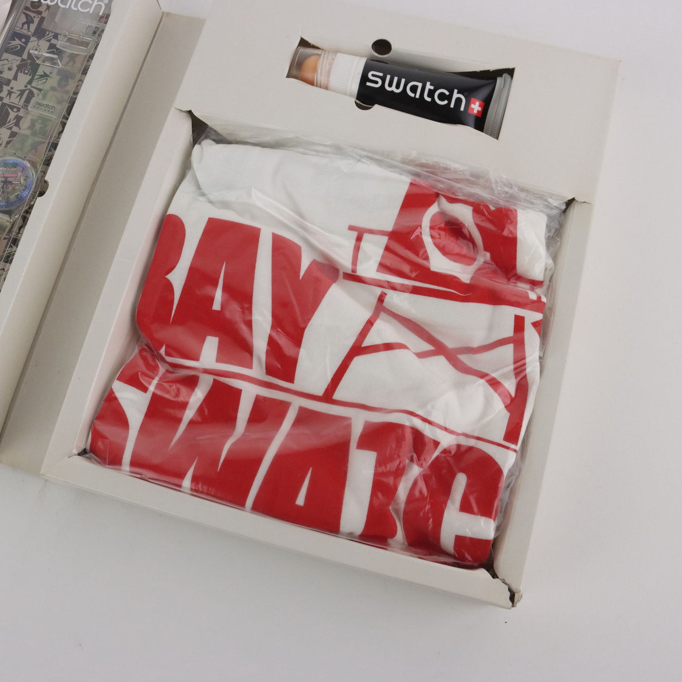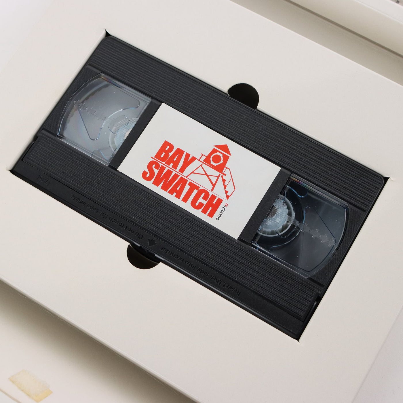 Bay Swatch box containing watch and gadgets. Vintage objects, vintage objects, 1960s articles, 1970s articles, 1930s articles, 1940s objects, 1950s objects, design articles.