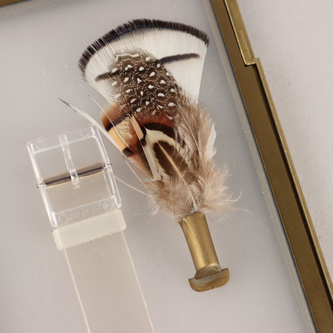 Watch with removable feather in plastic and rubber case. Vintage objects, vintage objects, 1960s articles, 1970s articles, 1930s articles, 1940s objects, 1950s objects, design articles.