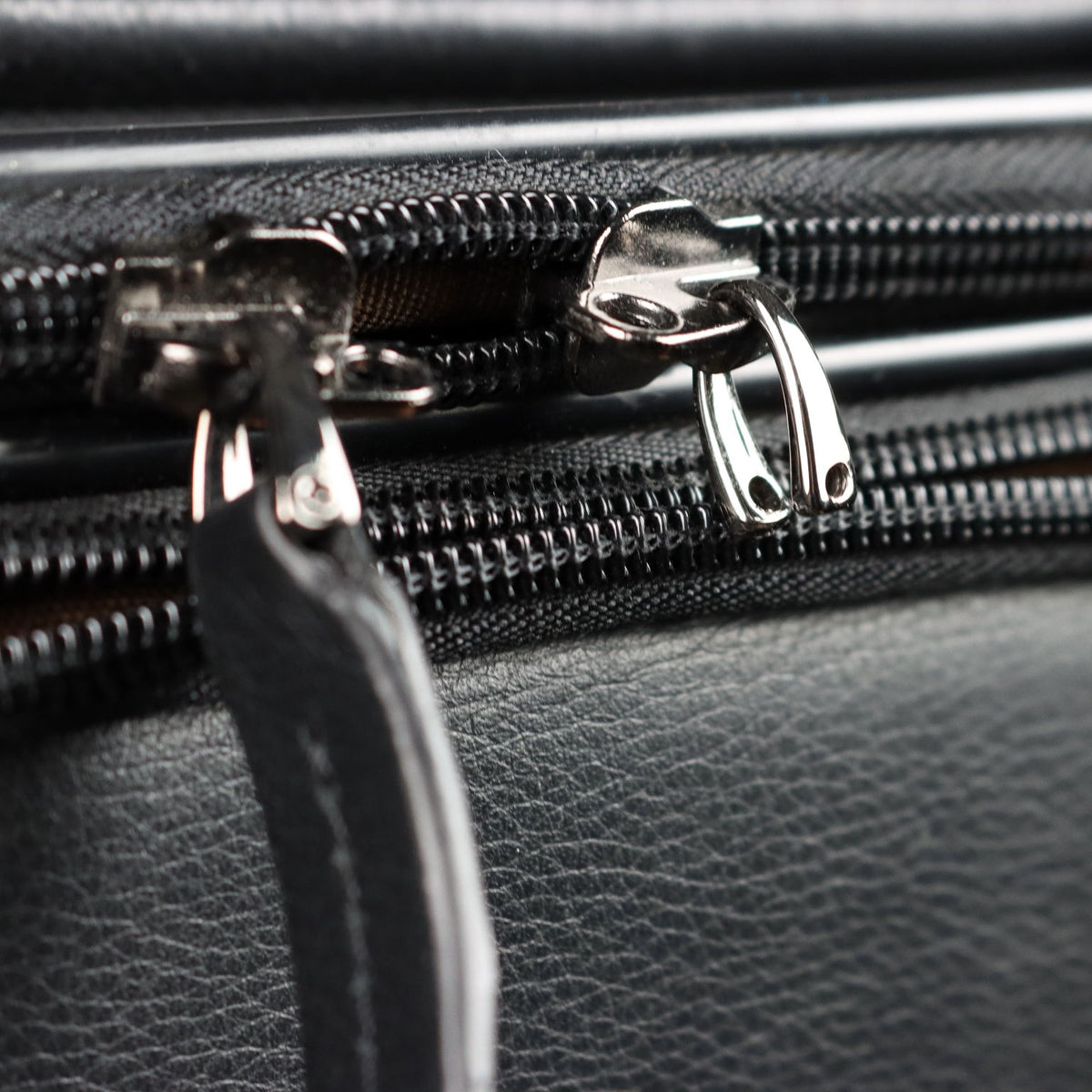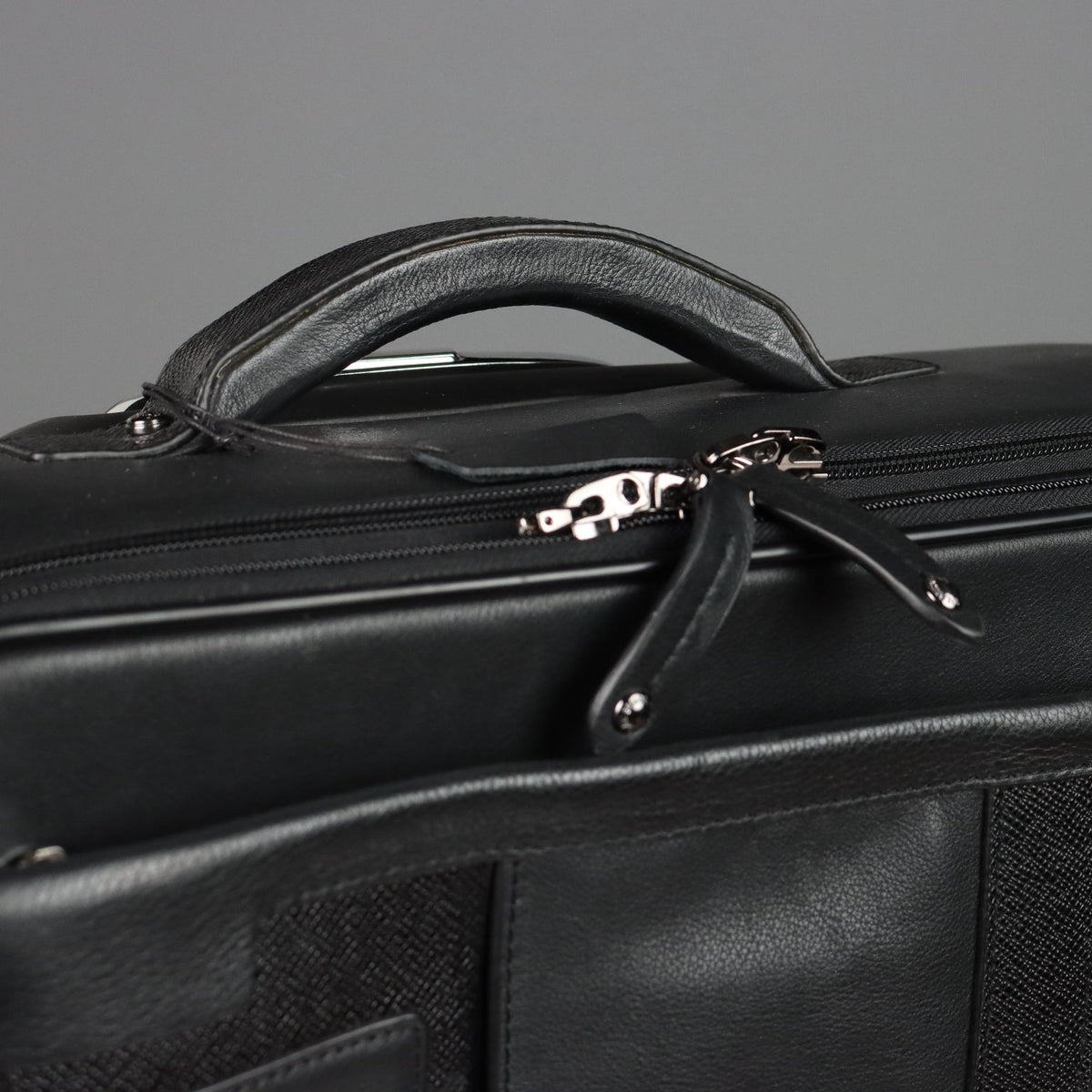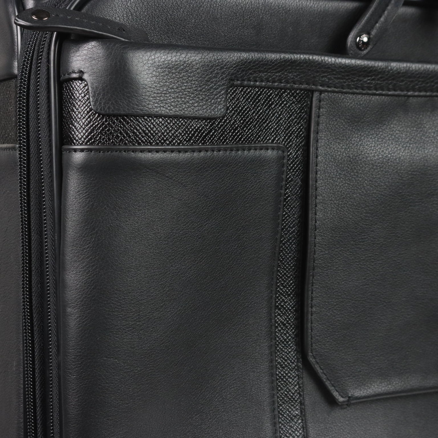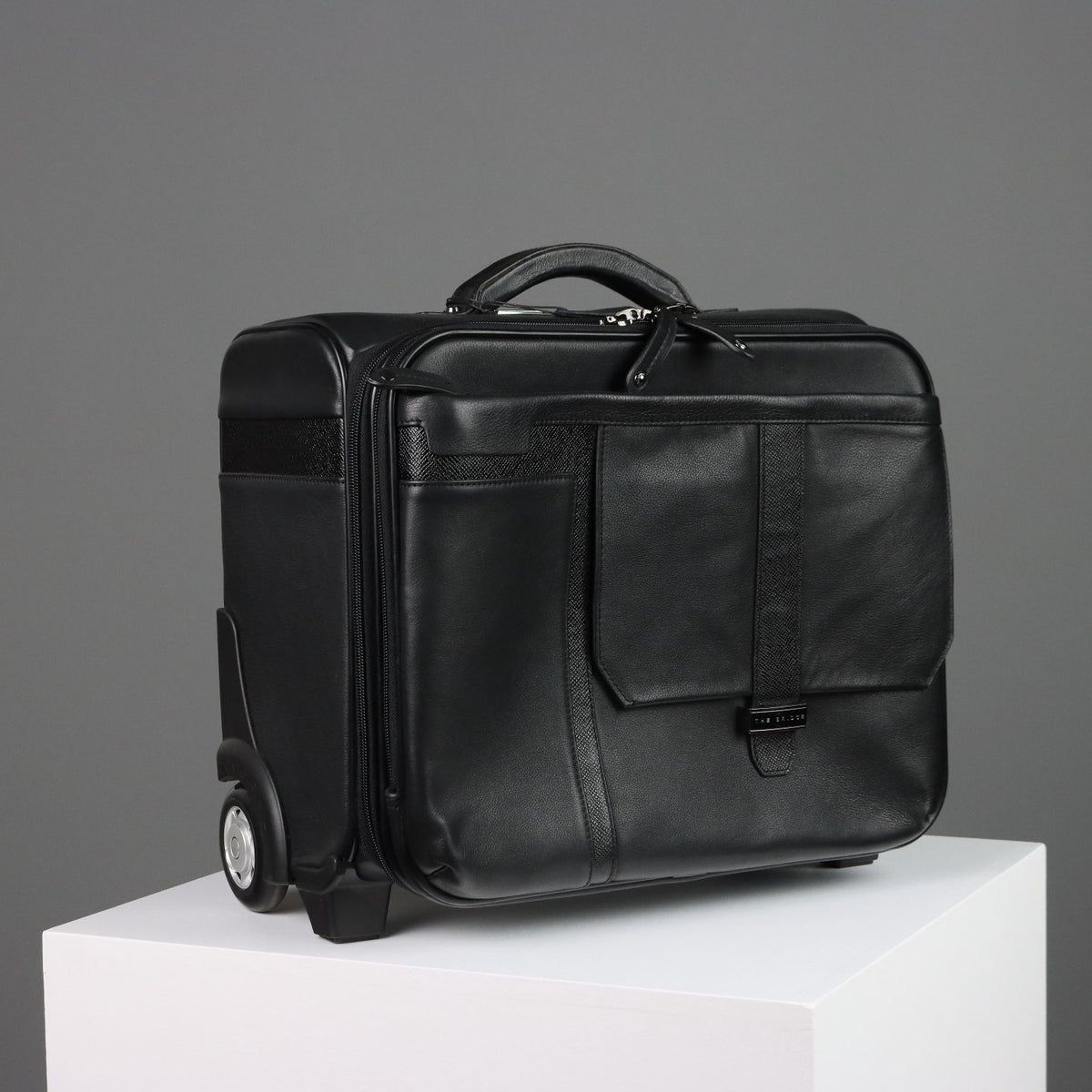 Soft black leather trolley, well organized in various compartments and pockets. The main compartment is roomy, equipped with a strap and a large zip pocket, inside there is also a combination lock, in its original packaging. On the front side there are additional compartments and pockets, as shown in the photo. Equipped with a sturdy leather handle and an extendable handle. The item seems to have never been used, the leather is in excellent condition, we only point out that two sliders are missing the leather strap. Second-hand, , vintage men's clothes, vintage lady's clothing, vintage scraves, 1950s trousers, 1950s skirts, 1960s skirts, second-hand, vintage trousers, 1980s skirts, used men's coat, used women's coats, used bags, second-hand bags, used clothes, vintage clothes, vintage shoes, clothing, 1990s shoes, 1980s shoes, 1970s shoes, 1960s shoes, 1950s shoes.