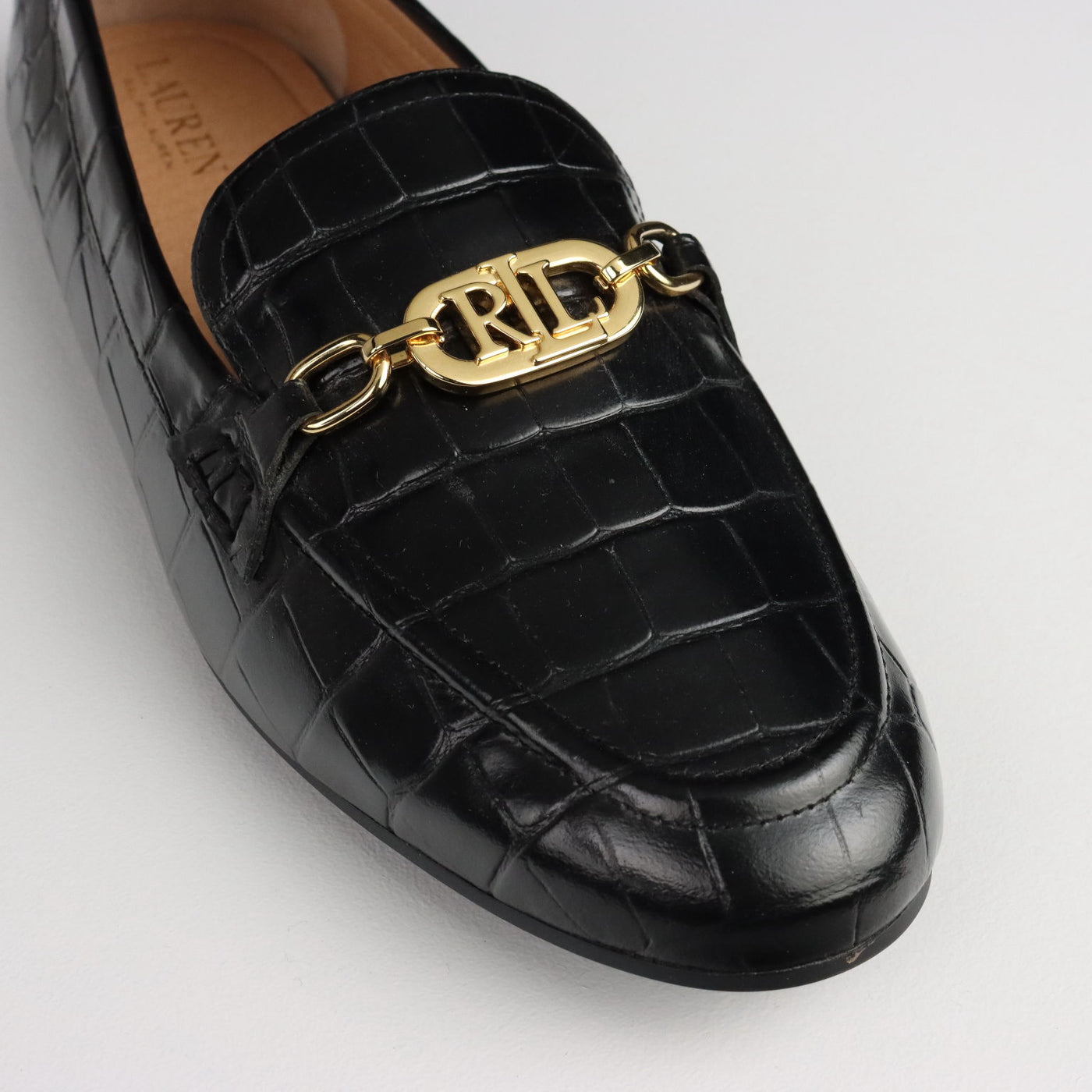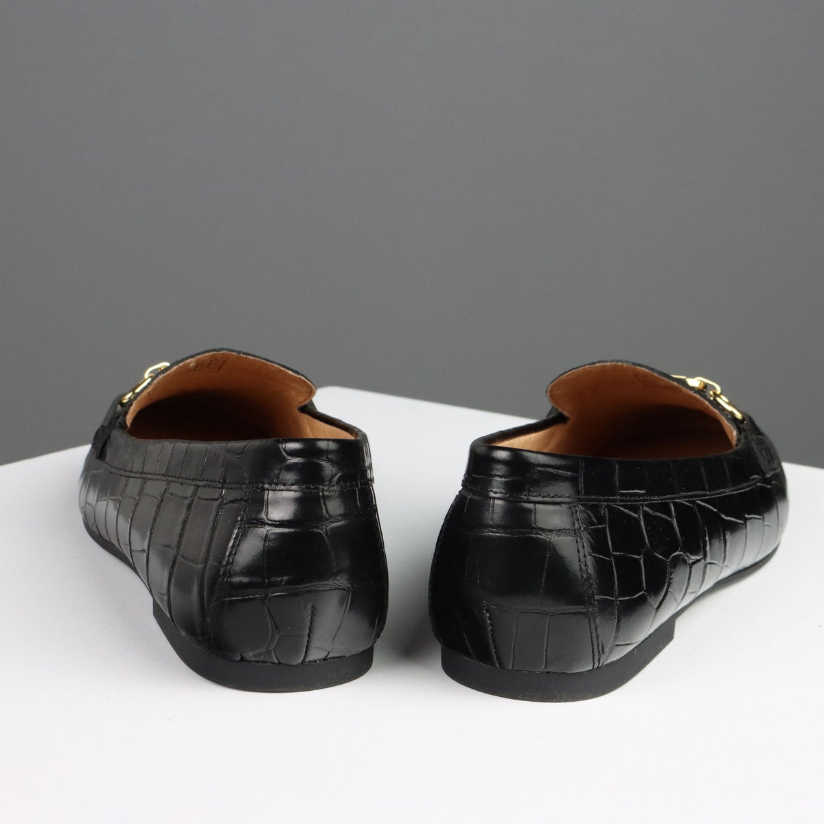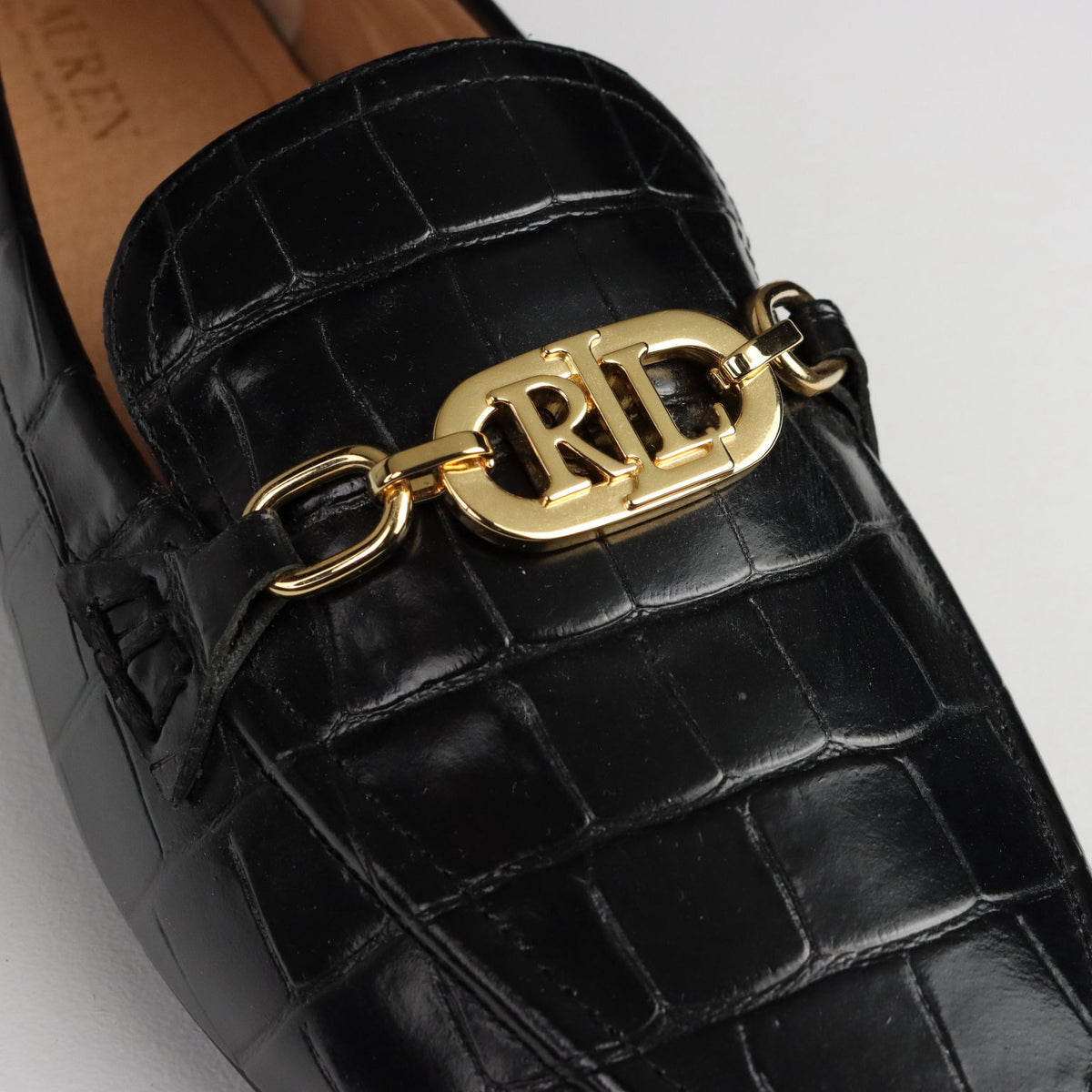 Crocodile print leather loafers, with gold metal 'RLL' brand logo. Probably never worn. Second-hand, , vintage men's clothes, vintage lady's clothing, vintage scraves, 1950s trousers, 1950s skirts, 1960s skirts, second-hand, vintage trousers, 1980s skirts, used men's coat, used women's coats, used bags, second-hand bags, used clothes, vintage clothes, vintage shoes, clothing, 1990s shoes, 1980s shoes, 1970s shoes, 1960s shoes, 1950s shoes.