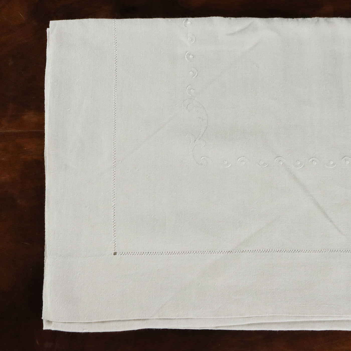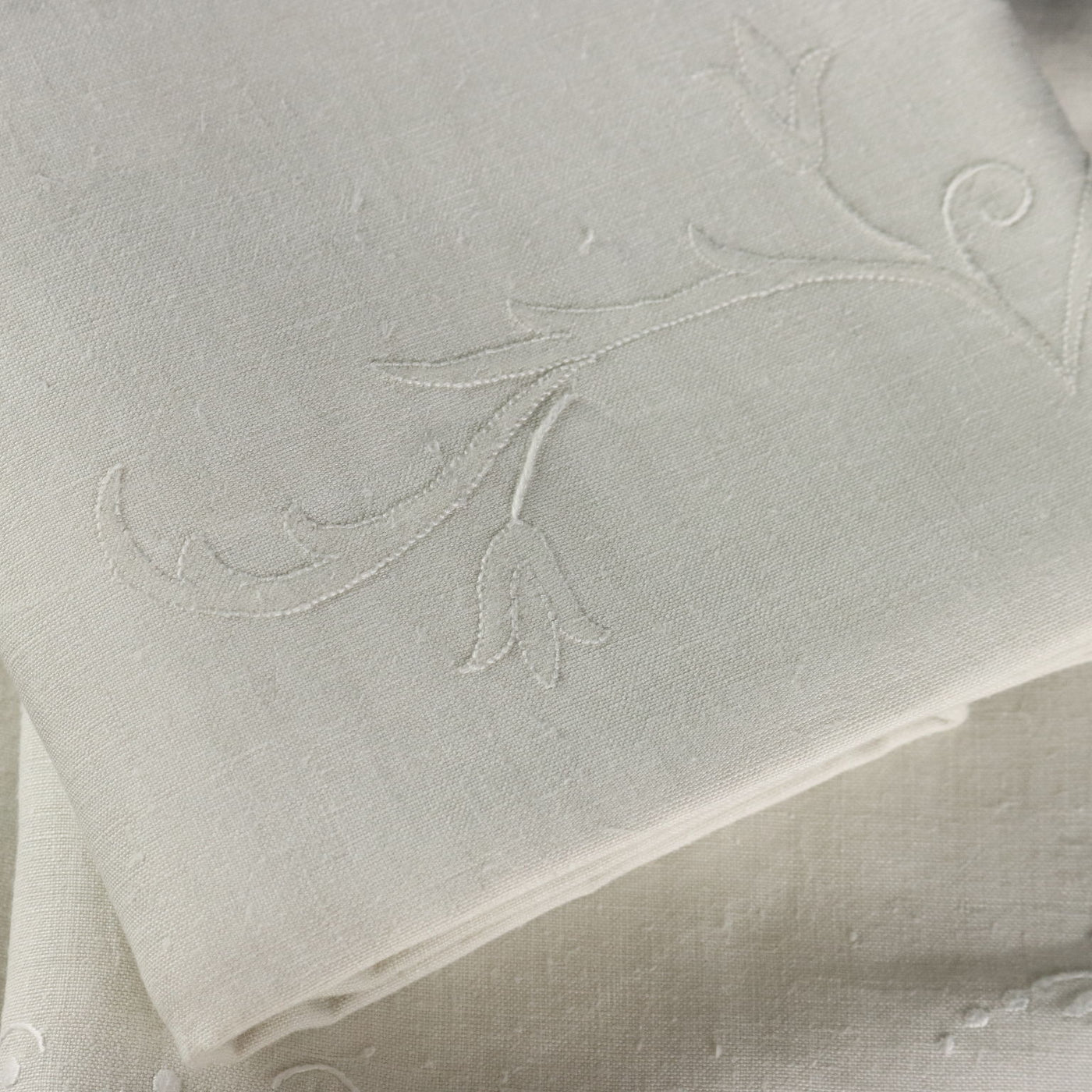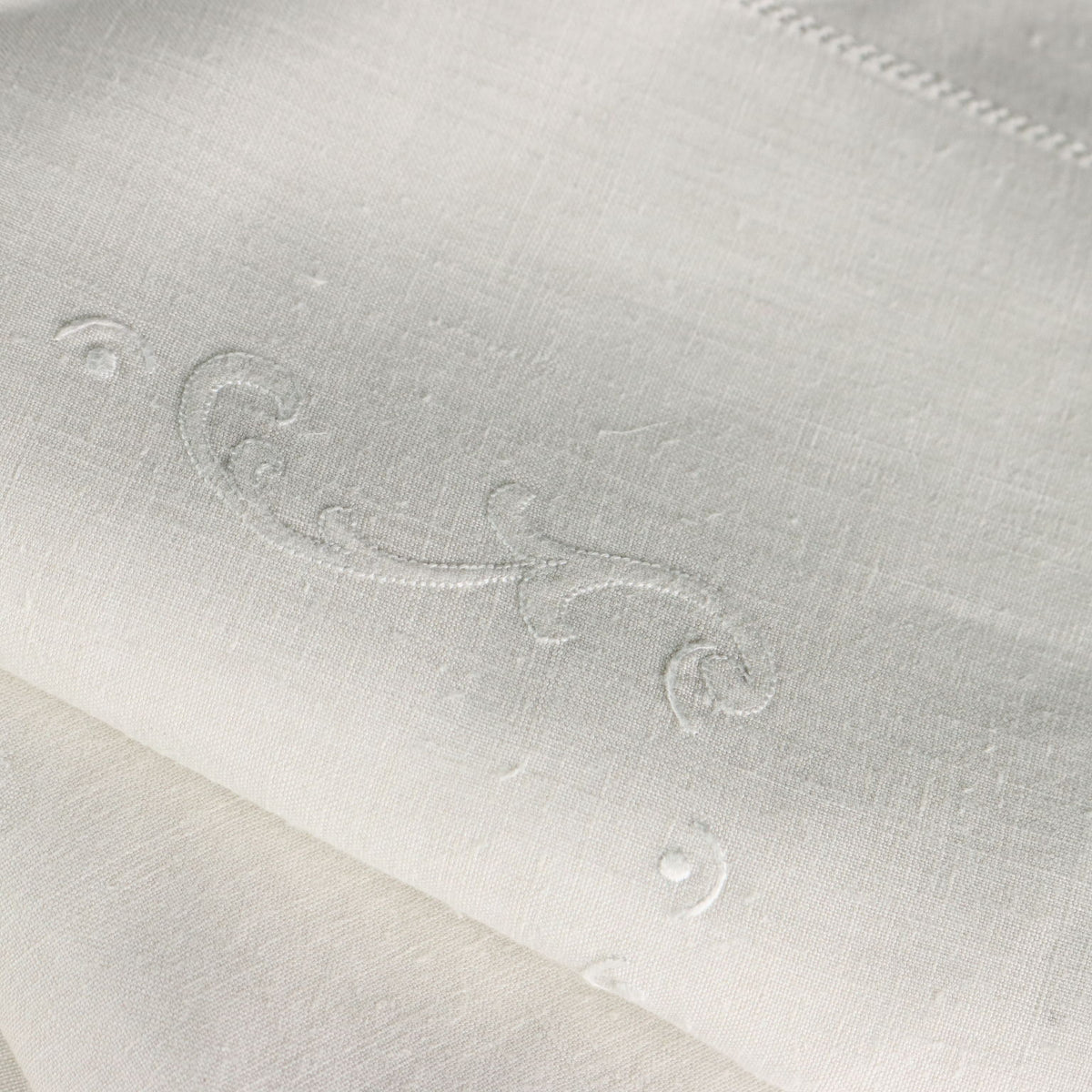 Single linen sheet with one pillowcase, embroidered with shadow stitch and satin stitch. Sheet size: 168x264 cm. Pillowcase size: 76x42 cm. 1960s scarf, 1950s scarf, 1940s scarf, vintage scarf, vintage clothing, vintage clothes, ancient tablecloths, flax tablecloth, vintage bed sheets, handmade bed sheets, ancient bed sheets, silk dress, vintage clothes, 1800s clothing, 1700s clothing, towels.