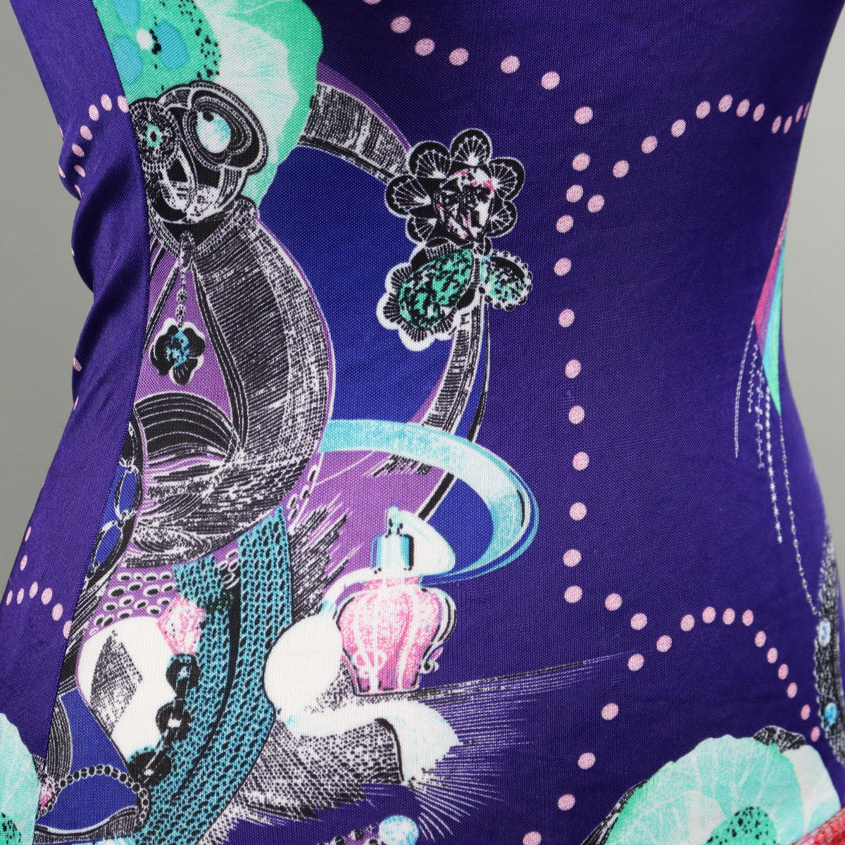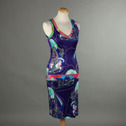 Sleeveless dress, with V-neck, in pure viscose. It stands out for its lively and colorful print, a distinctive feature of the Barcelona brand. There is no label indicating the size, it fits a S/M, considering that the fabric is elastic. Second-hand, , vintage men's clothes, vintage lady's clothing, vintage scraves, 1950s trousers, 1950s skirts, 1960s skirts, second-hand, vintage trousers, 1980s skirts, used men's coat, used women's coats, used bags, second-hand bags, used clothes, vintage clothes, vintage shoes, clothing, 1990s shoes, 1980s shoes, 1970s shoes, 1960s shoes, 1950s shoes.