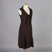Sleeveless dress with a clean and elegant line. The neckline is unique, framed by a fabric band to tie as desired. Side zipper. Second-hand, , vintage men's clothes, vintage lady's clothing, vintage scraves, 1950s trousers, 1950s skirts, 1960s skirts, second-hand, vintage trousers, 1980s skirts, used men's coat, used women's coats, used bags, second-hand bags, used clothes, vintage clothes, vintage shoes, clothing, 1990s shoes, 1980s shoes, 1970s shoes, 1960s shoes, 1950s shoes.