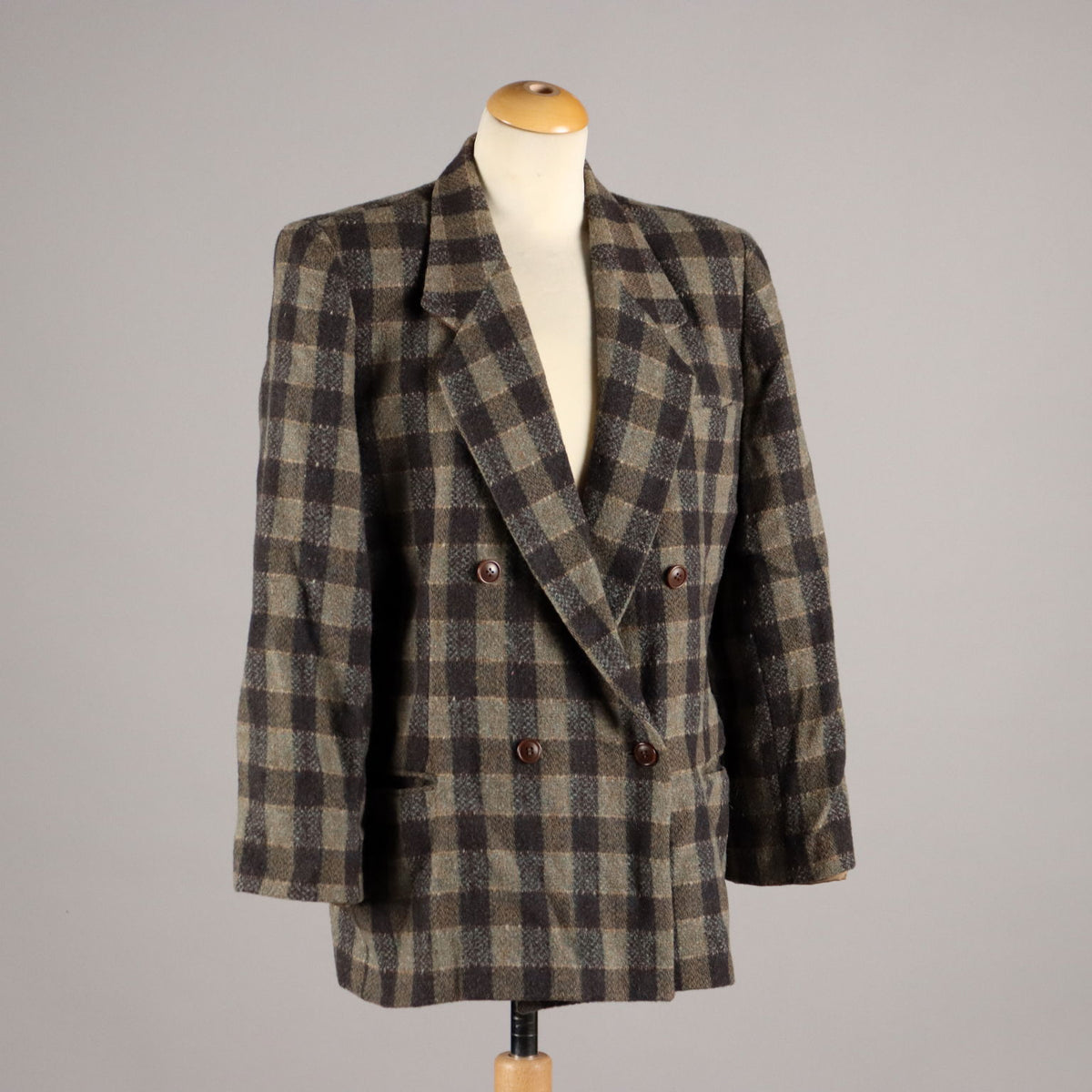 80s jacket in checked wool in shades of beige and brown, designed by Armani for Emporio. The marked size is Italian 46, but has a loose fit (length 70 cm, shoulders 45 cm, waistline 102 cm). Vintage, vintage scraves, vintage scarf, vintage ties, vintage men's hats, vintage women's hats, vintage 1970s clothes, vintage 1960s clothes, 1950s vintage clothes, 1940s vintage dresses, vintage women's clothing, vintage bags, vintage objects, vintage clothing, vintage clothes, vintage shoes, vintage handbag, vintage belt, vintage clothes, clothing, vintage elegant clothes, 1970s vintage clothes, 1960s vintage clothes, 1950s dresses, 1950s clothing, 1940s clothing, 1990s clothing, 1980s clothing, 1970s clothing, 1960s clothing, 2000s clothing.