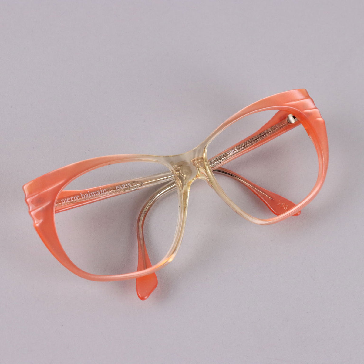 Vintage glasses frame signed Pierre Balmain in shaded salmon plastic material. The model is slightly cat-eye, very good conditions: it may have never been worn. Measurements: temples 14 centimeters, lenses 58 millimeters. Vintage, vintage scraves, vintage scarf, vintage ties, vintage men's hats, vintage women's hats, vintage 1970s clothes, vintage 1960s clothes, 1950s vintage clothes, 1940s vintage dresses, vintage women's clothing, vintage bags, vintage objects, vintage clothing, vintage clothes, vintage shoes, vintage handbag, vintage belt, vintage clothes, clothing, vintage elegant clothes, 1970s vintage clothes, 1960s vintage clothes, 1950s dresses, 1950s clothing, 1940s clothing, 1990s clothing, 1980s clothing, 1970s clothing, 1960s clothing, 2000s clothing.