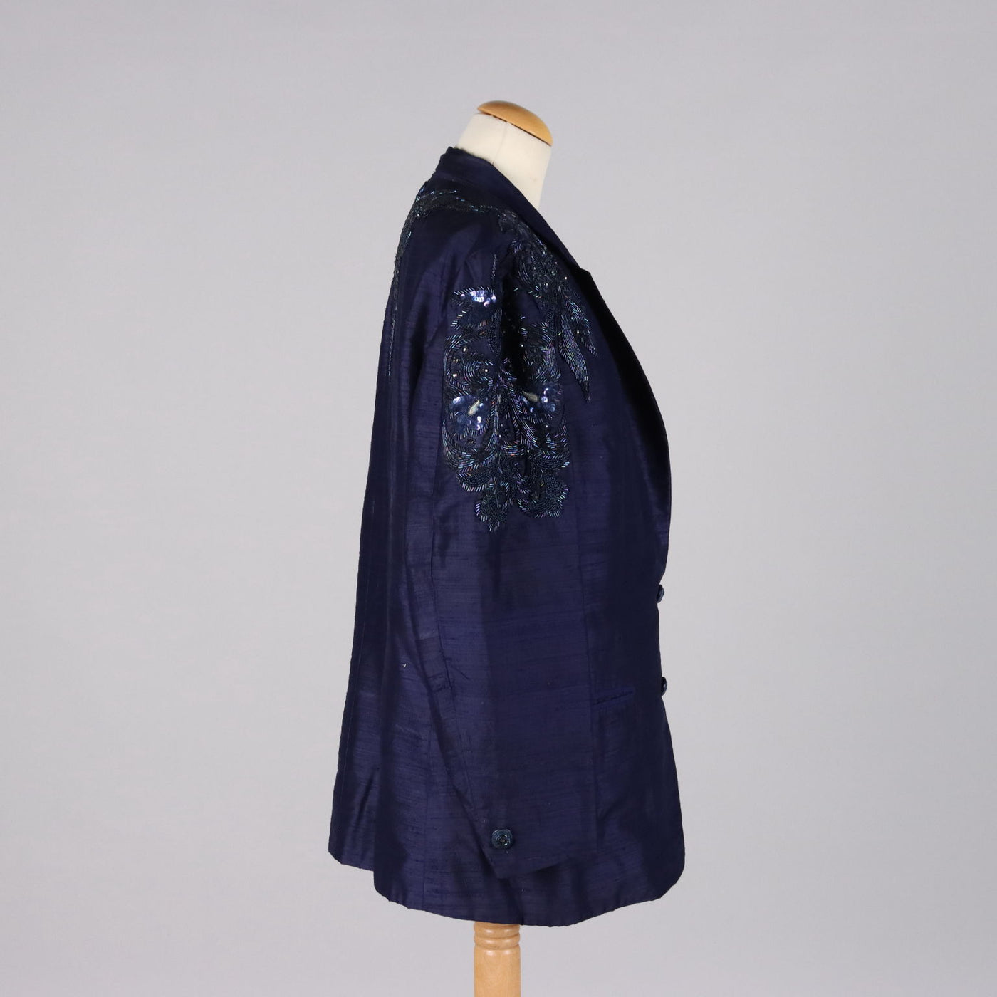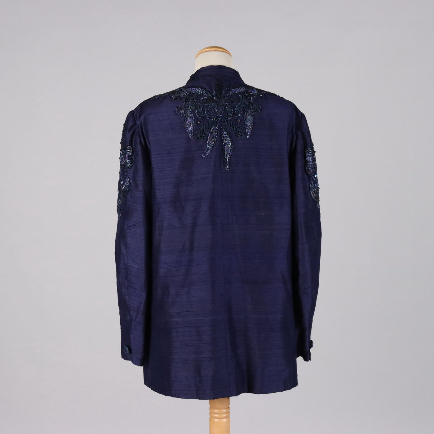 Vintage Blue Jacket Shantung Silk Size 18 1980s