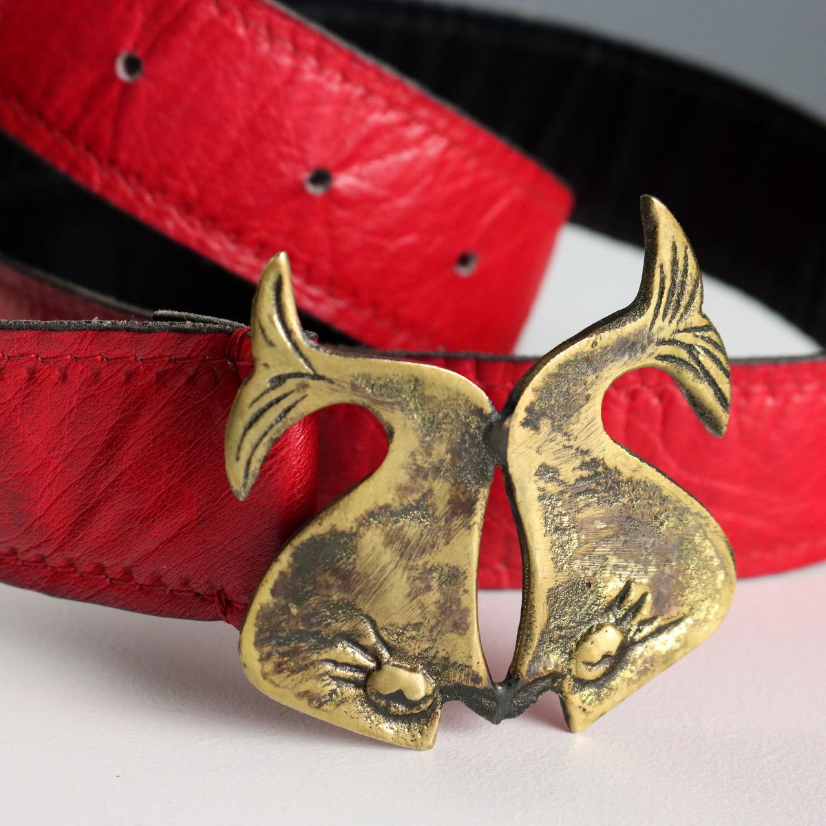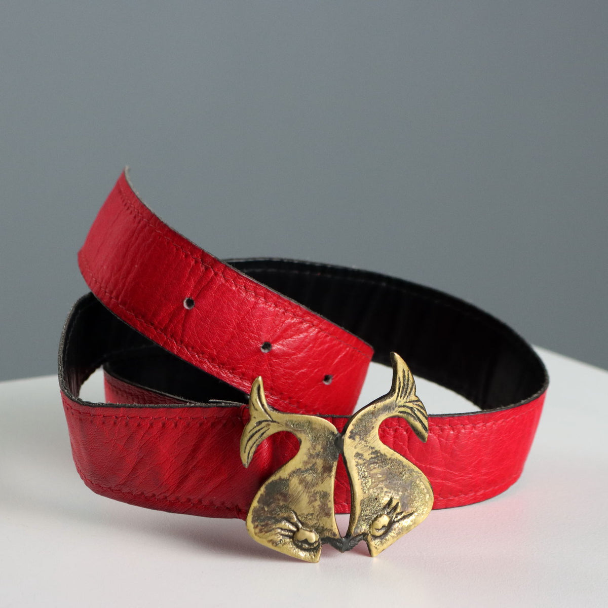 70s-80s red leather belt with original metal whale buckle. Vintage, vintage scraves, vintage scarf, vintage ties, vintage men's hats, vintage women's hats, vintage 1970s clothes, vintage 1960s clothes, 1950s vintage clothes, 1940s vintage dresses, vintage women's clothing, vintage bags, vintage objects, vintage clothing, vintage clothes, vintage shoes, vintage handbag, vintage belt, vintage clothes, , 1950s dresses, 1940s dresses, 1930s dresses, used bags, second-hand bags, 1980s objects, 1970s objects, 1990s dresses, 1980s dresses, 1970s dresses, 1960s dresses.