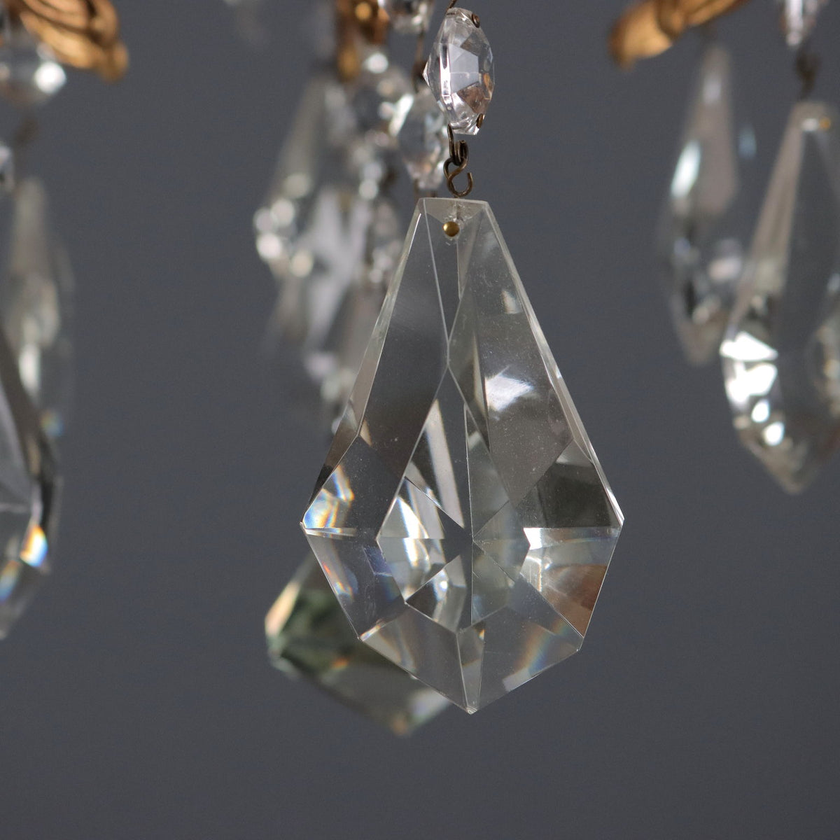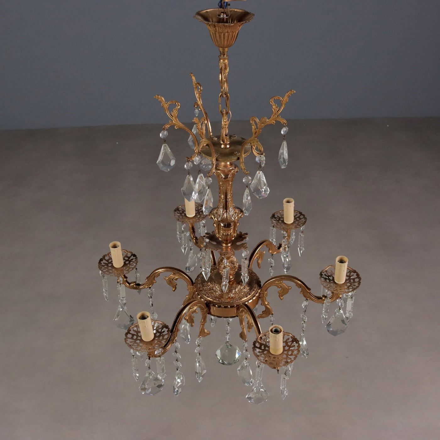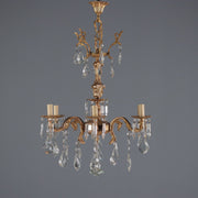 This Rococo-style chandelier, crafted at the end of the last century, is made of cast and gilded bronze and embellished with crystal drop pendants. It has six arms (suitable for E14 bulbs). Ceiling lamp, oil lamp, lantern, chandelier, ceiling lamp.