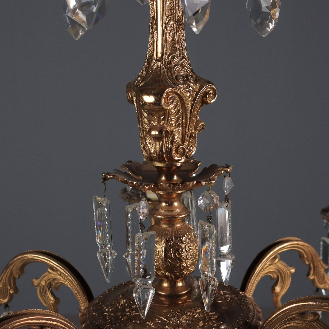 Antique Lamp Rococo Style Bronze Crystal Italy XX Century