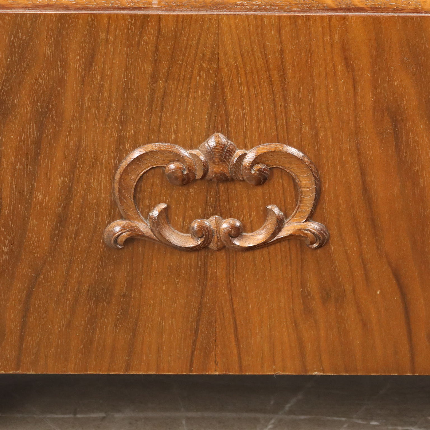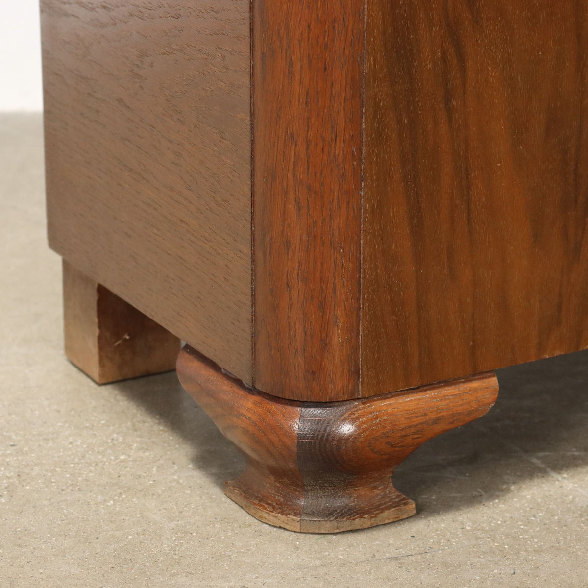 Deco pendulum clock veneered in walnut-stained oak, walnut moulding and floral carvings. Manufactured by Junghas. Germany, early 20th century. Other ancient cabinets, , cabinets antiques, ancient cabinets, trunks, chest.