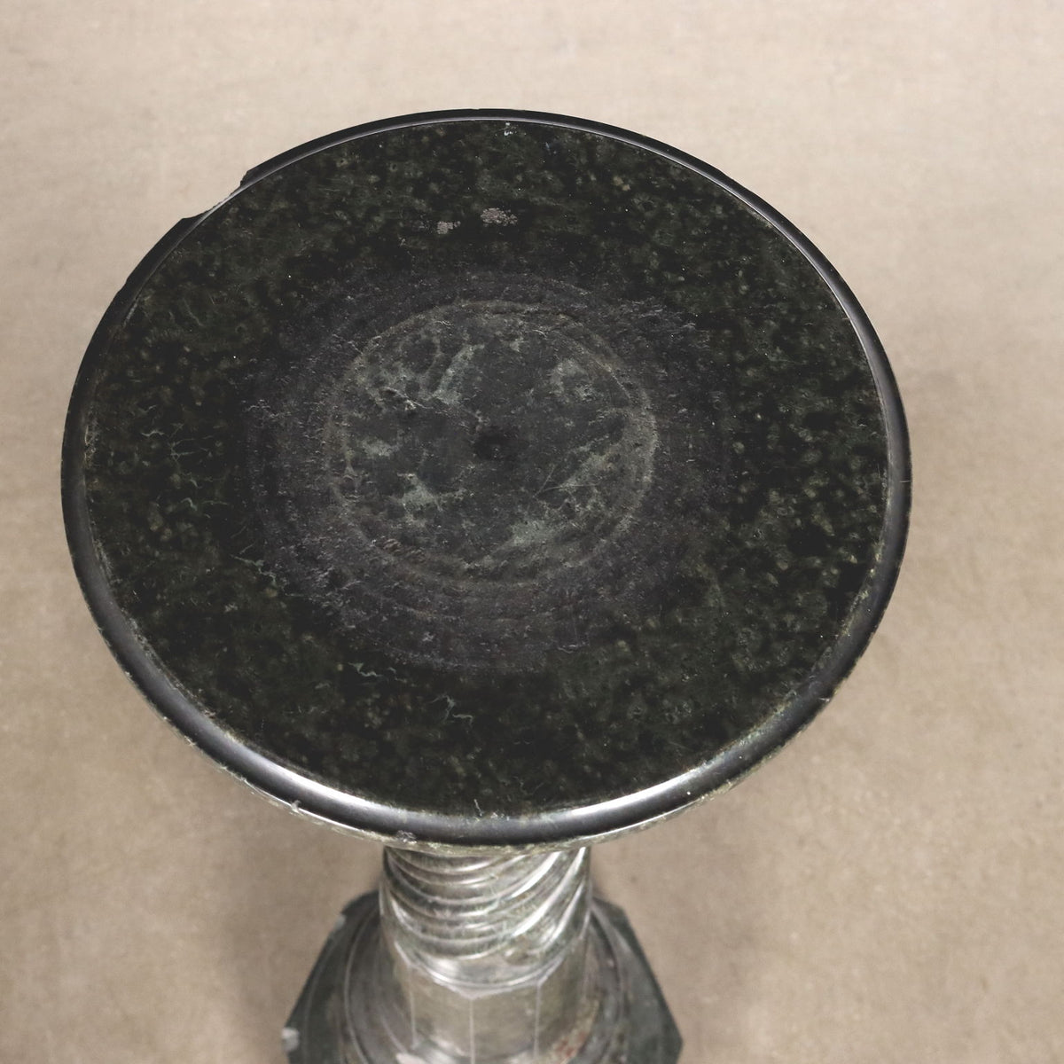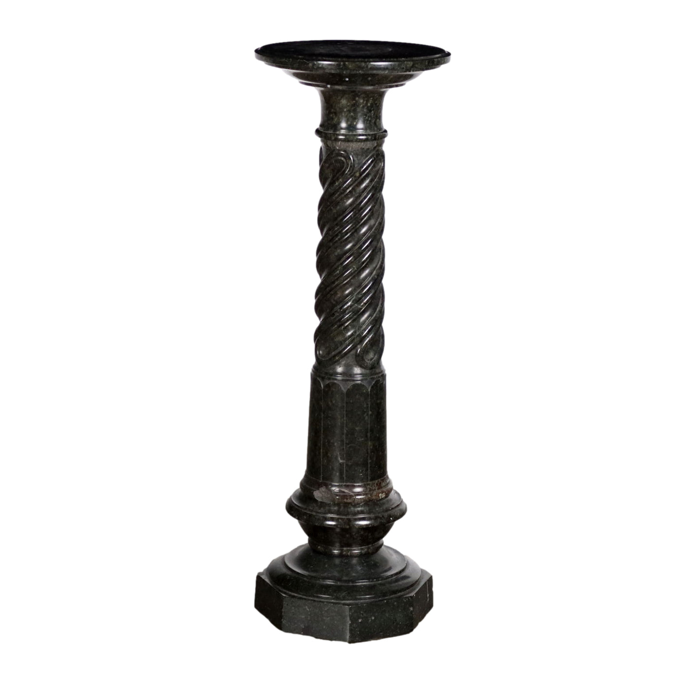 Column in turned and worked serpentine marble, with a part carved on the lathe with helical grooves. Early 1900s, chipping and small losses. Other ancient cabinets, , cabinets antiques, ancient cabinets, trunks, chest.