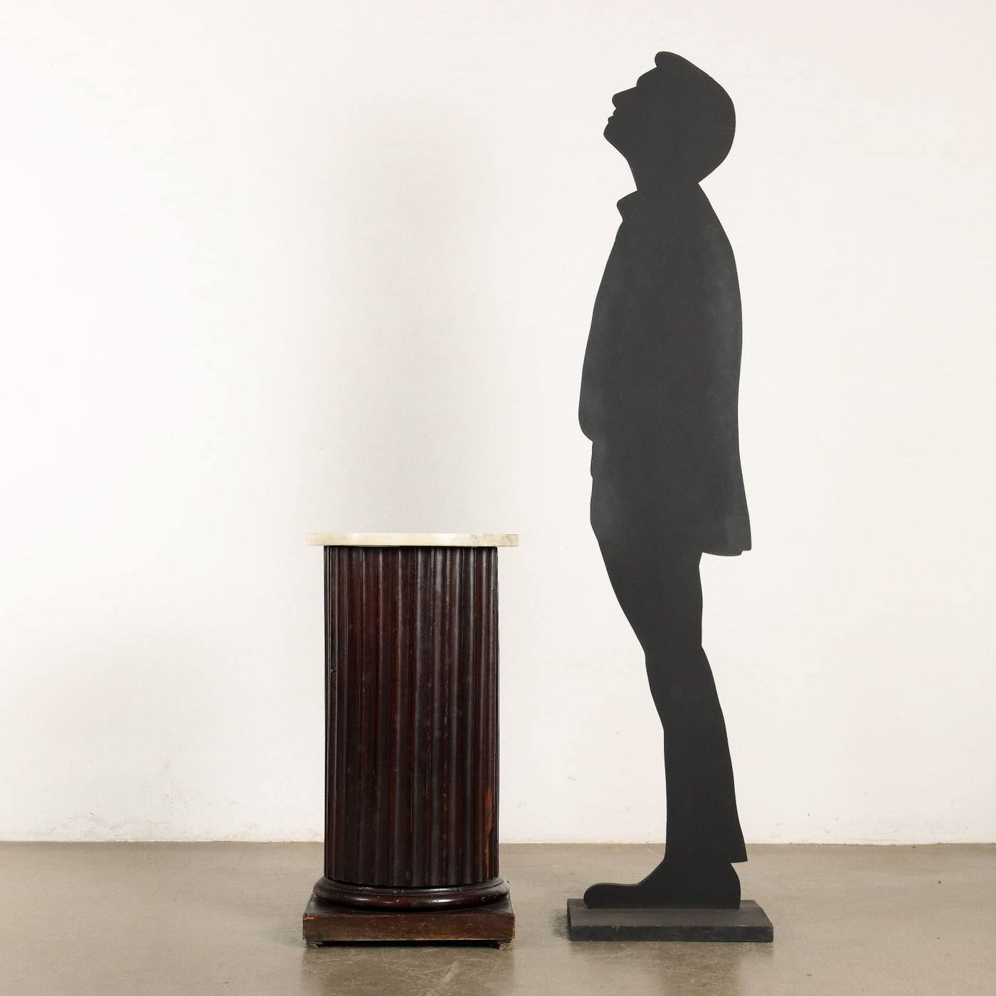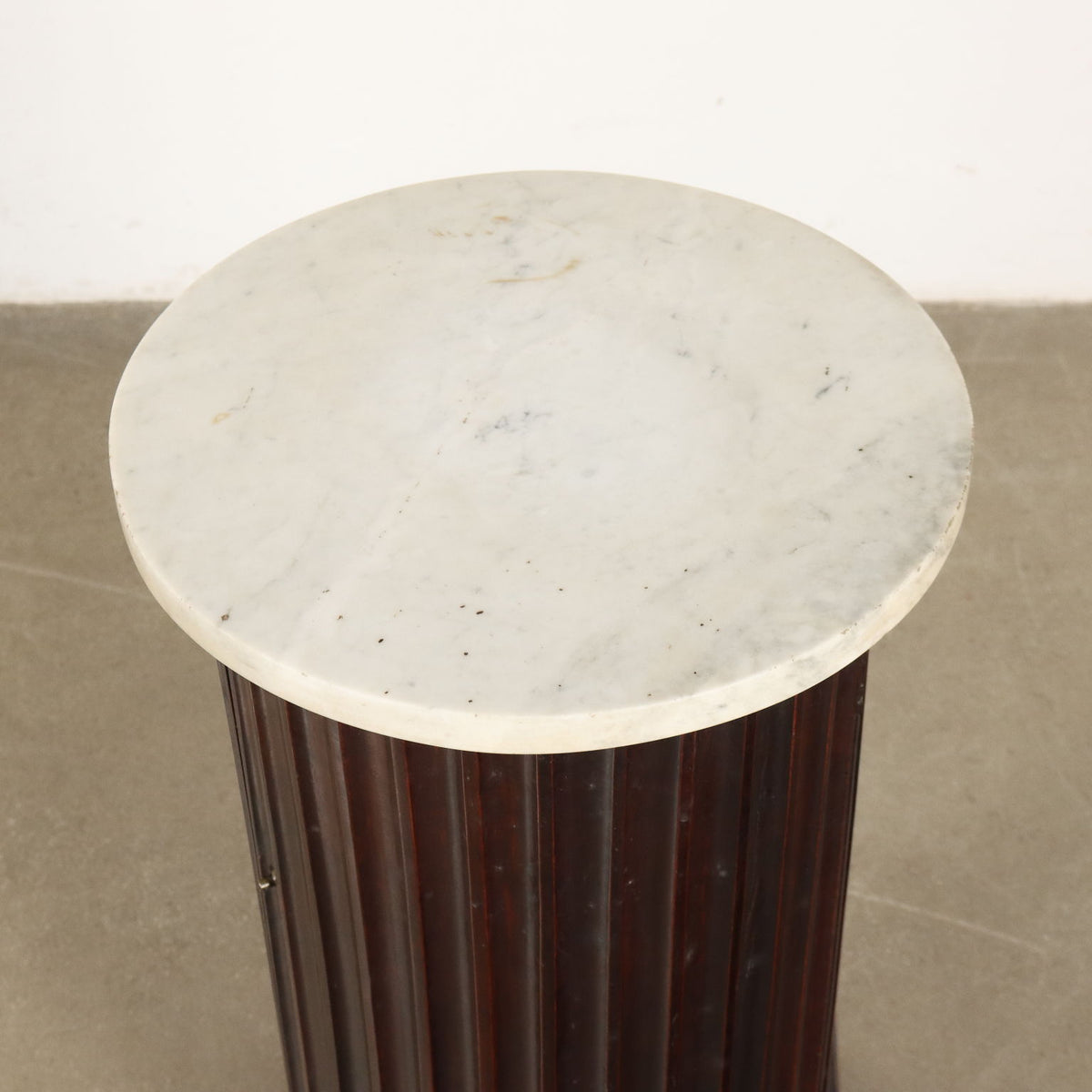 Empire column bedside table in walnut, Italy first quarter of the 19th century. White marble top, column shaft with fluted motif equipped with door and internally with drawer and support shelf; resting on a square base. Poplar and fir interiors. Marble top replaced. bedside table, bedroom cabinet, chest of drawers.
