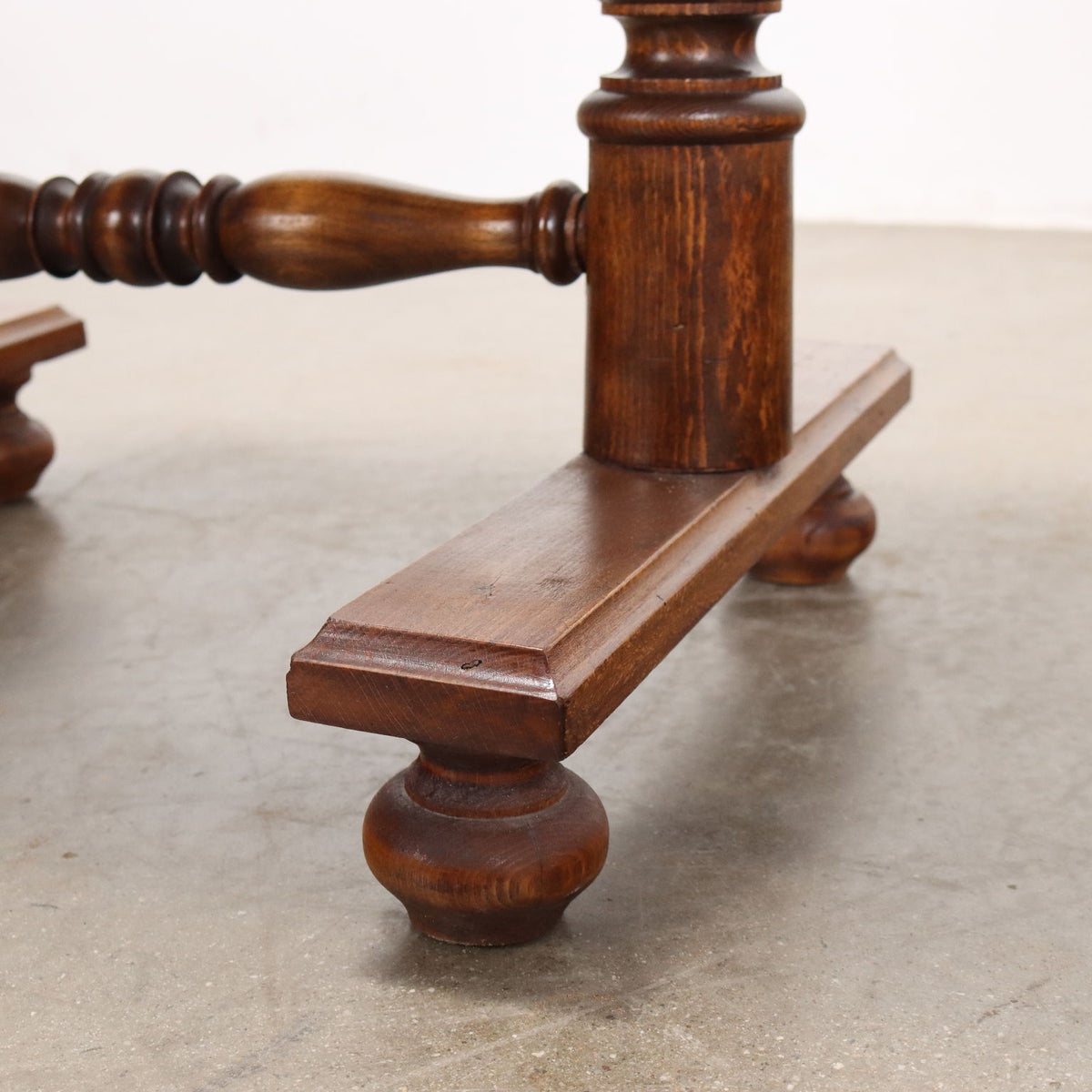 Umbertino period bedside table made with two uprights joined by a turned crosspiece, two drawers on the front, in beech veneered in walnut. bedside table, bedroom cabinet, chest of drawers.