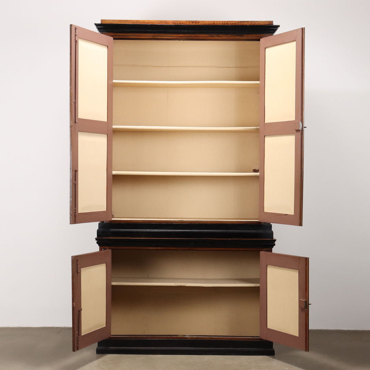 Antique Cupboard Double Top Cherrywood Walnut Italy XIX Century