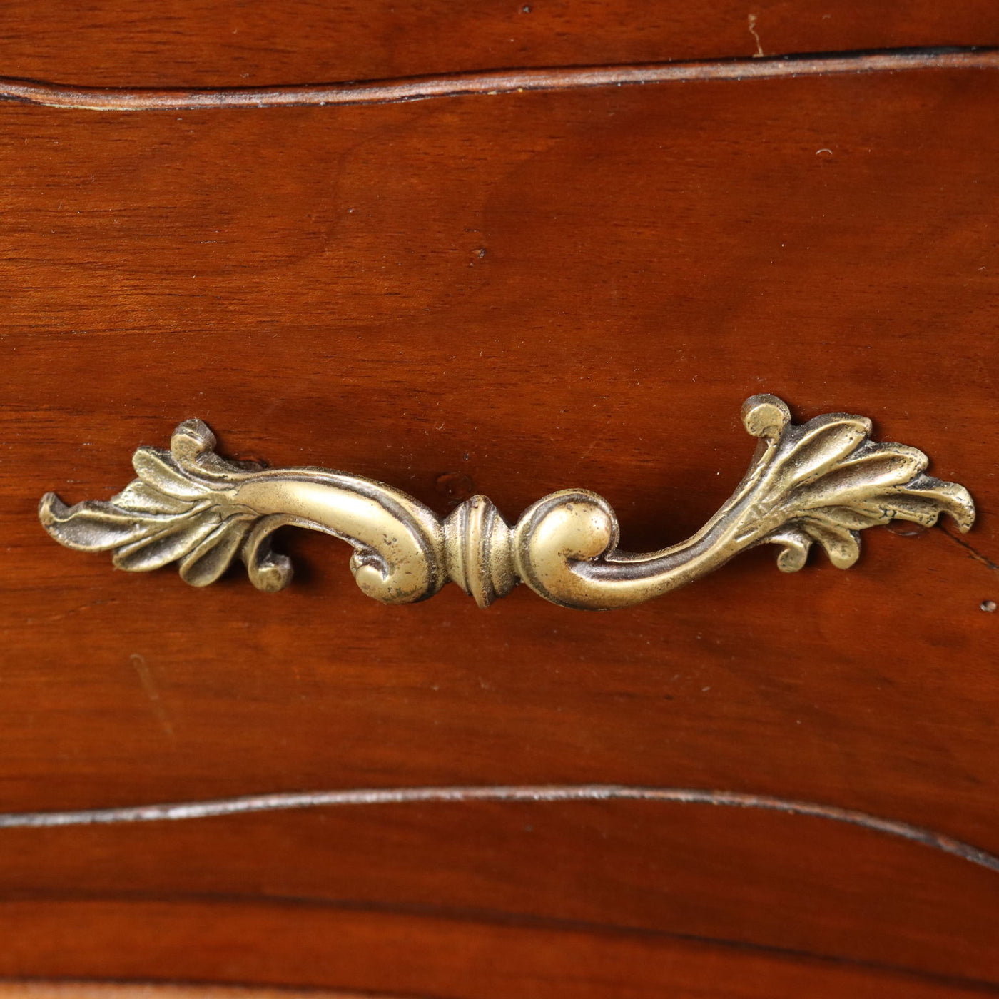 Baroque walnut drop-leaf cabinet, wavy front with two tripartite drawers, wavy apron and feet, with leaf carvings. Drop-leaf cabinet with internal cabinet with four drawers and open compartment, upper shelf added to close the support surface of the riser that it originally carried. Interior and back in poplar, handles and escutcheons in bronze. Parma, third quarter of the 18th century. Flap cabinets, trumeau, writing desk, flap cabinet with étagère, chest of drwers with flap, sécrètaire, cabinet.