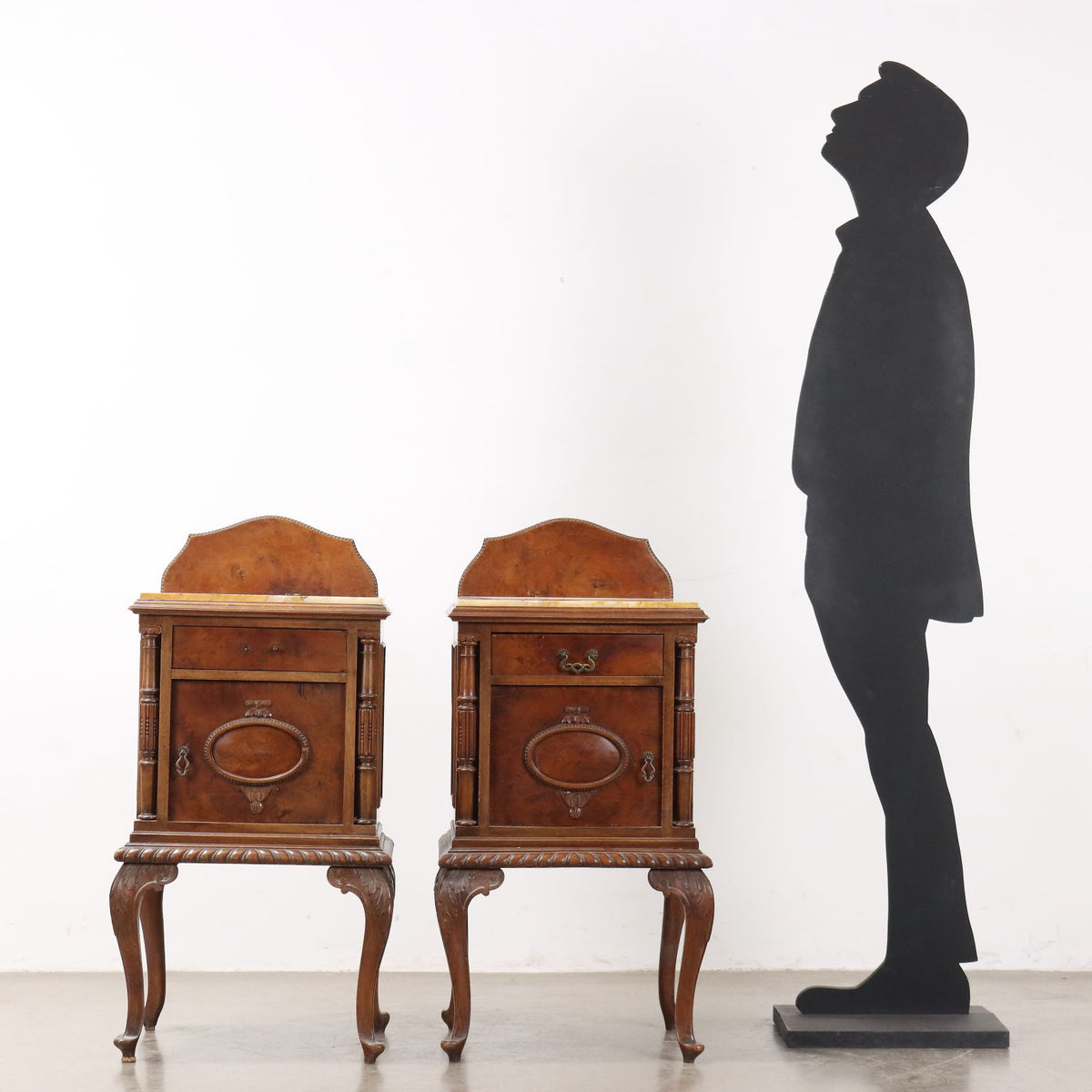 Antique Bedside Tables Chippendale Style Walnut Marble XX Century