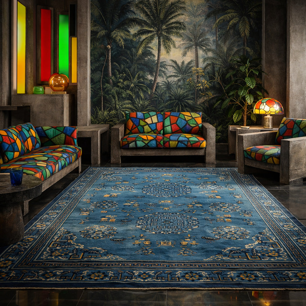 Antique Beijing Carpet Cotton Wool Extra-Thin Knot 138 x 106 In