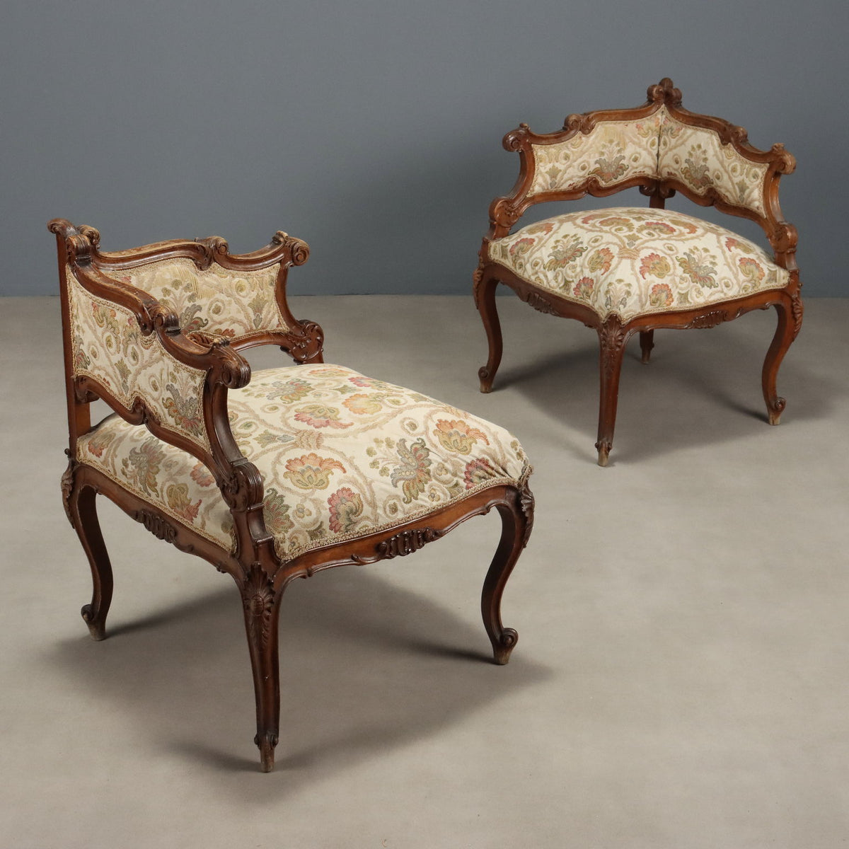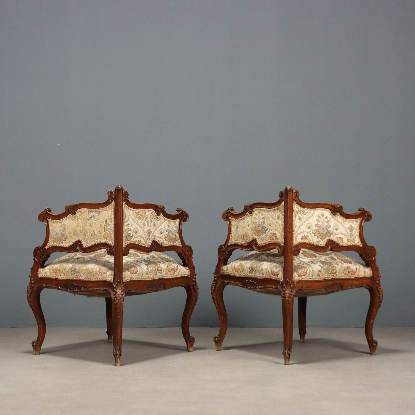 Antique Corner Chairs Baroque Style Walnut Padding XIX Century