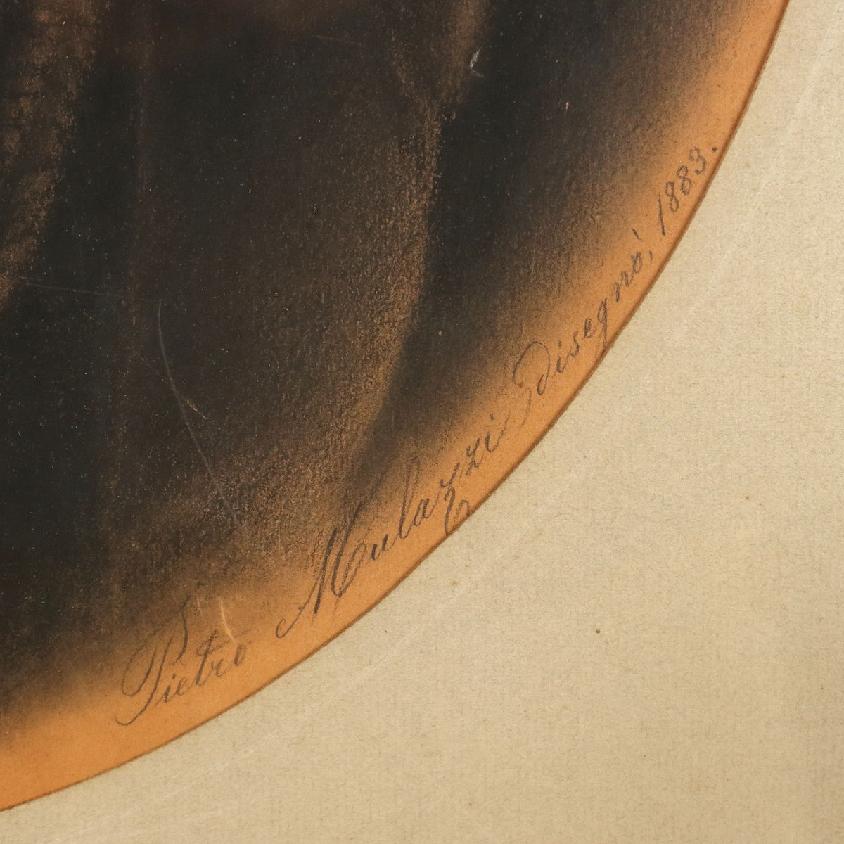 Antique Painting Portraits Pencil on Paper Italy 1883