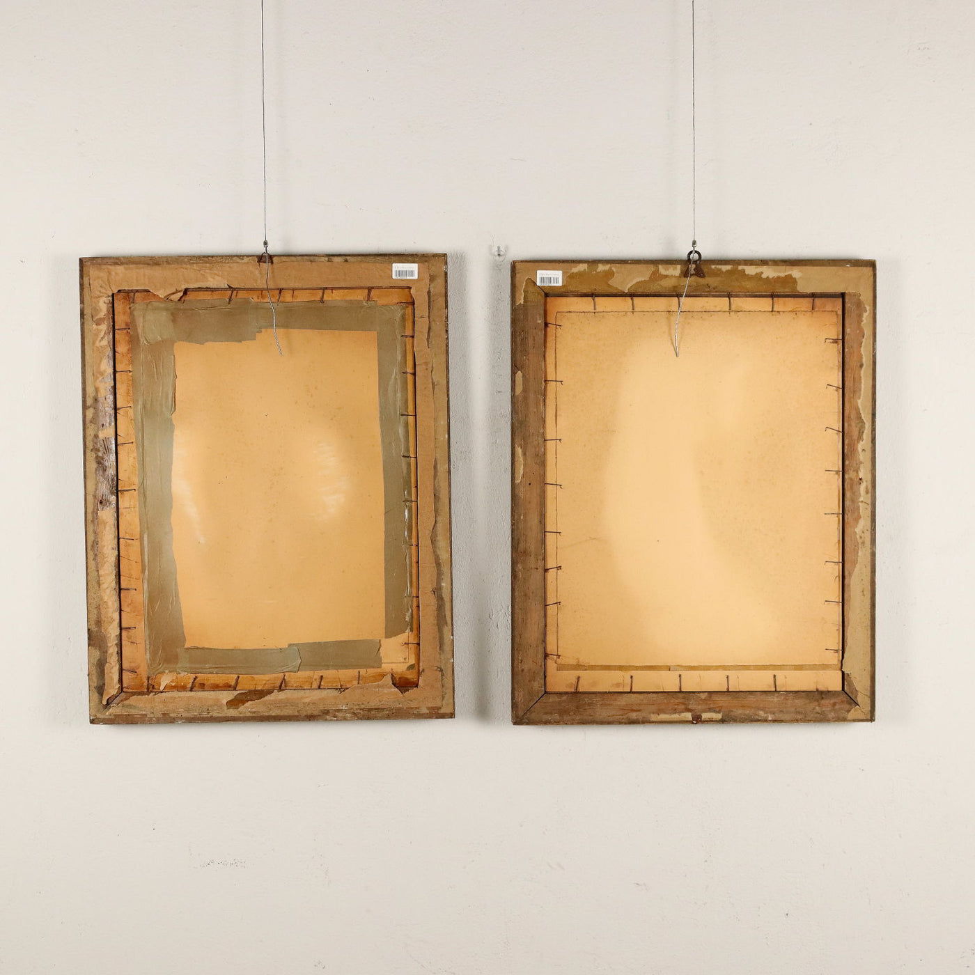 Pencil on paper. Bottom right, on both, the writing 'Pietro Mulazzi sketched', with the date 1883. By an unknown artist but skilled in the use of pencils, these are the portraits of a bourgeois couple, whose gray faces emerge clearly from the paper background red. They are presented in contemporary gilded frames, with several shortcomings (to be restored). Art '800, , oil on canvas painting, ancient painting, landscape painting, still life paintings, ancient art, painting oil on wooden board.