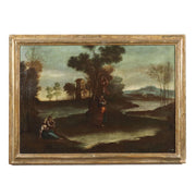 Ancient Painting '700 Landscape with Figures Oil on Canvas Style Frame