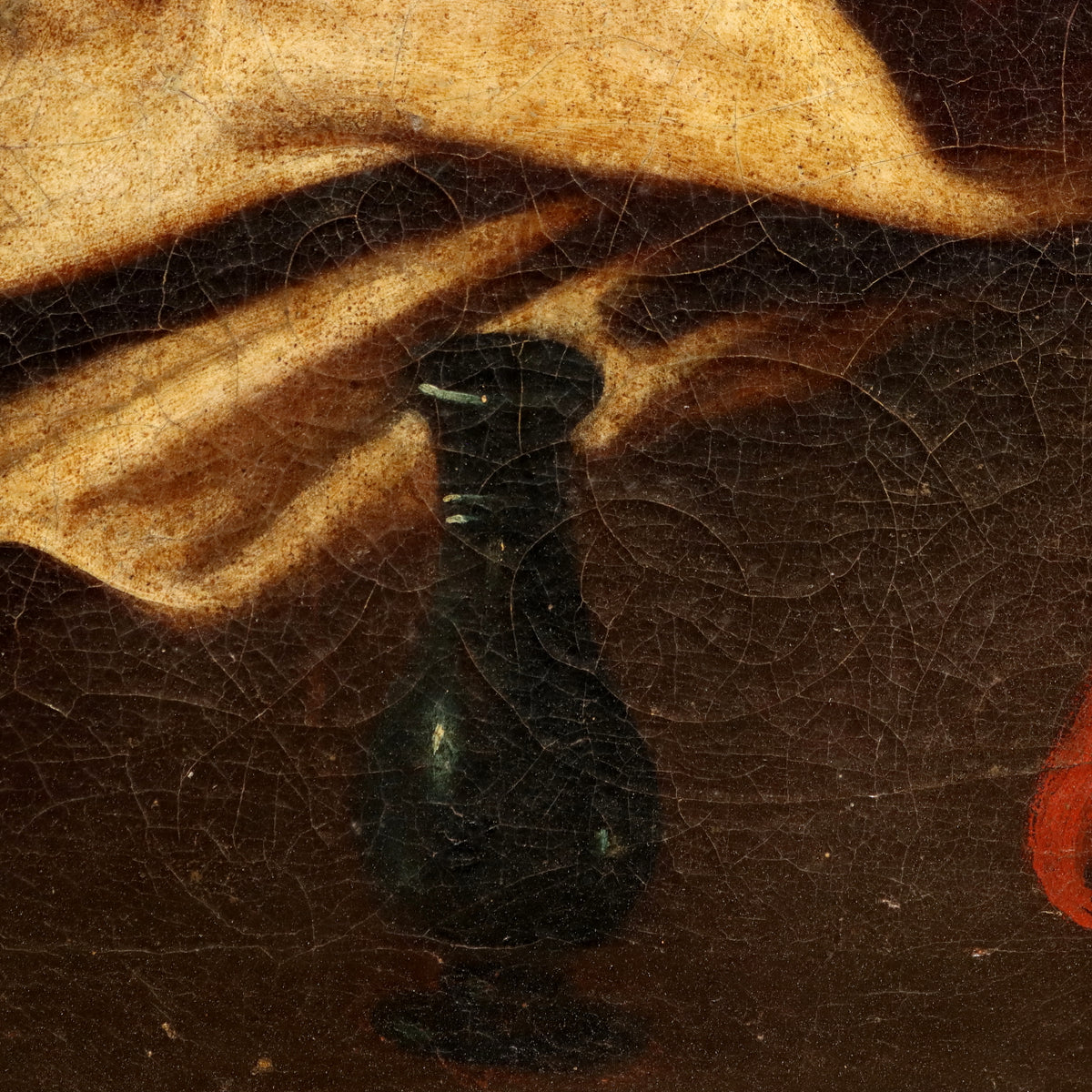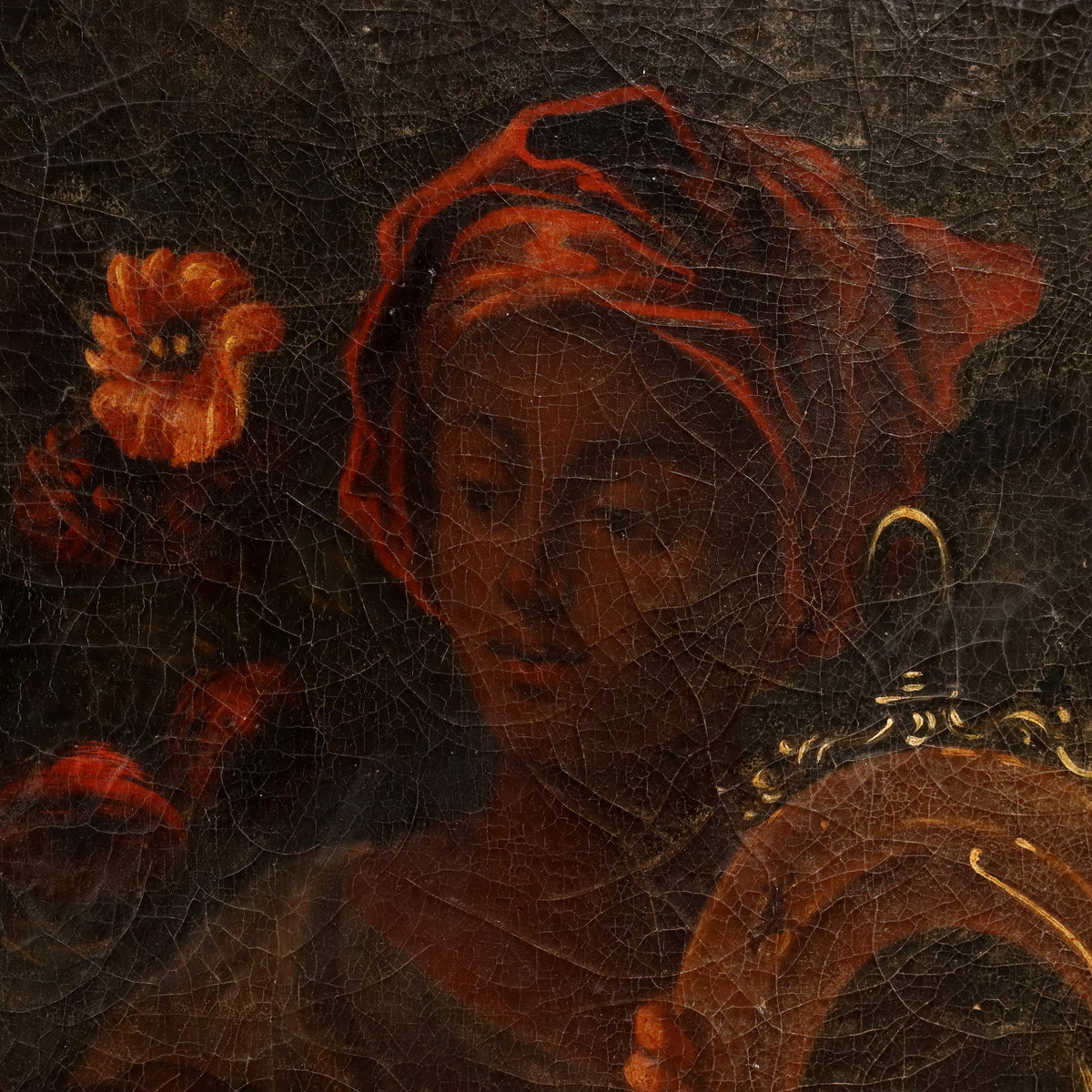 Oil painting on canvas. The large painting recalls the pictorial methods of the 17th century but is from a later period, and was created on a canvas applied to an older one. The scene tells the biblical episode (taken from the Book of Kings) widely narrated pictorially, depicting the bath of Bathsheba, the wife of General Uriah, in the service of King David. According to the biblical story, David is on the terrace of his palace when he notices the woman bathing in the garden of her home, surrounded by her handmaids. Davide falls in love with her and seduces her, making her pregnant. To hide the crime, he recalls General Uriah from the front, to make him lie down with his wife, but Uriah does not want to leave his soldiers; then David sends him to fight on the front line hoping that he will be killed: this happens and David can marry Bathsheba, but he will be punished by God for the adultery and impiety committed. The painting shows the moment in which Bathsheba, having just come out of the bathroom, while she is reflected in the mirror held by a slave girl, and surrounded by other servants, reads the note that King David sent her; the latter appears at the top right, overlooking the terrace. The scene is dominated by female figures intertwined with each other, in a tangle of clothes and fabrics, and surrounded by flowers from the garden; in the center stands the mirror in a rich golden frame. The painting has a patch at the bottom right. It is presented in an antique gilded frame. Ancient painting, , art articles, lady's portrait, animal paintings, painting mountain landscape, oil on canvas painting, still life paintings, 1600s painting, italian painters oil on canvas paintings landscapes, painting sea landscape, painting winter landscape, painting autumn landscape, landscape painting, ancient art, religious painting.