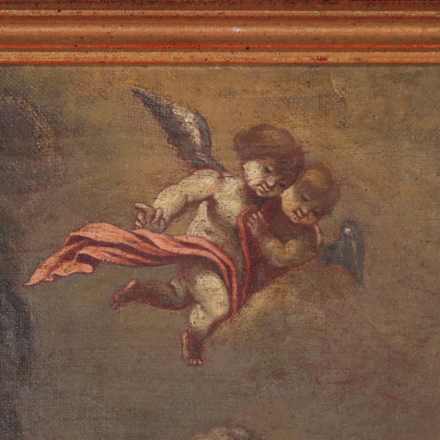 Antique Painting with Religious Subject Oil on Canvas XVIII Century