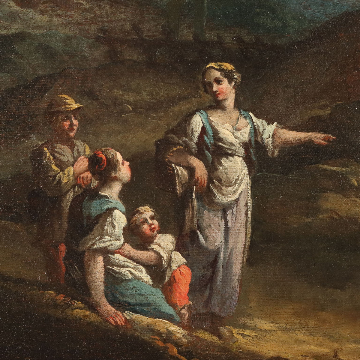 Antique Painting Landscape with Figures Oil on Canvas XVIII Century