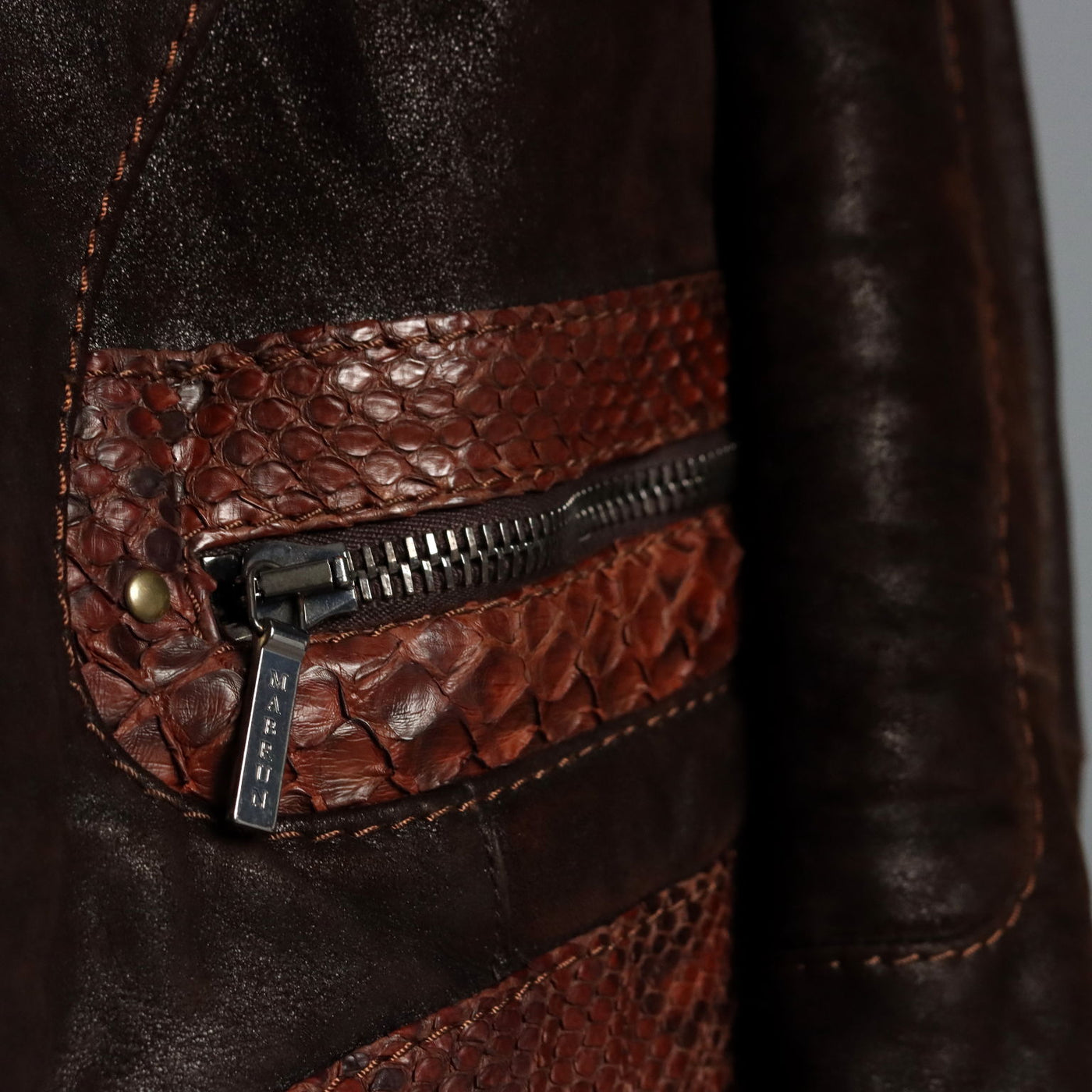 Soft sheepskin jacket with a two-way zipper, two pockets, and leather inserts. Mabrun is an Italian company founded in the...