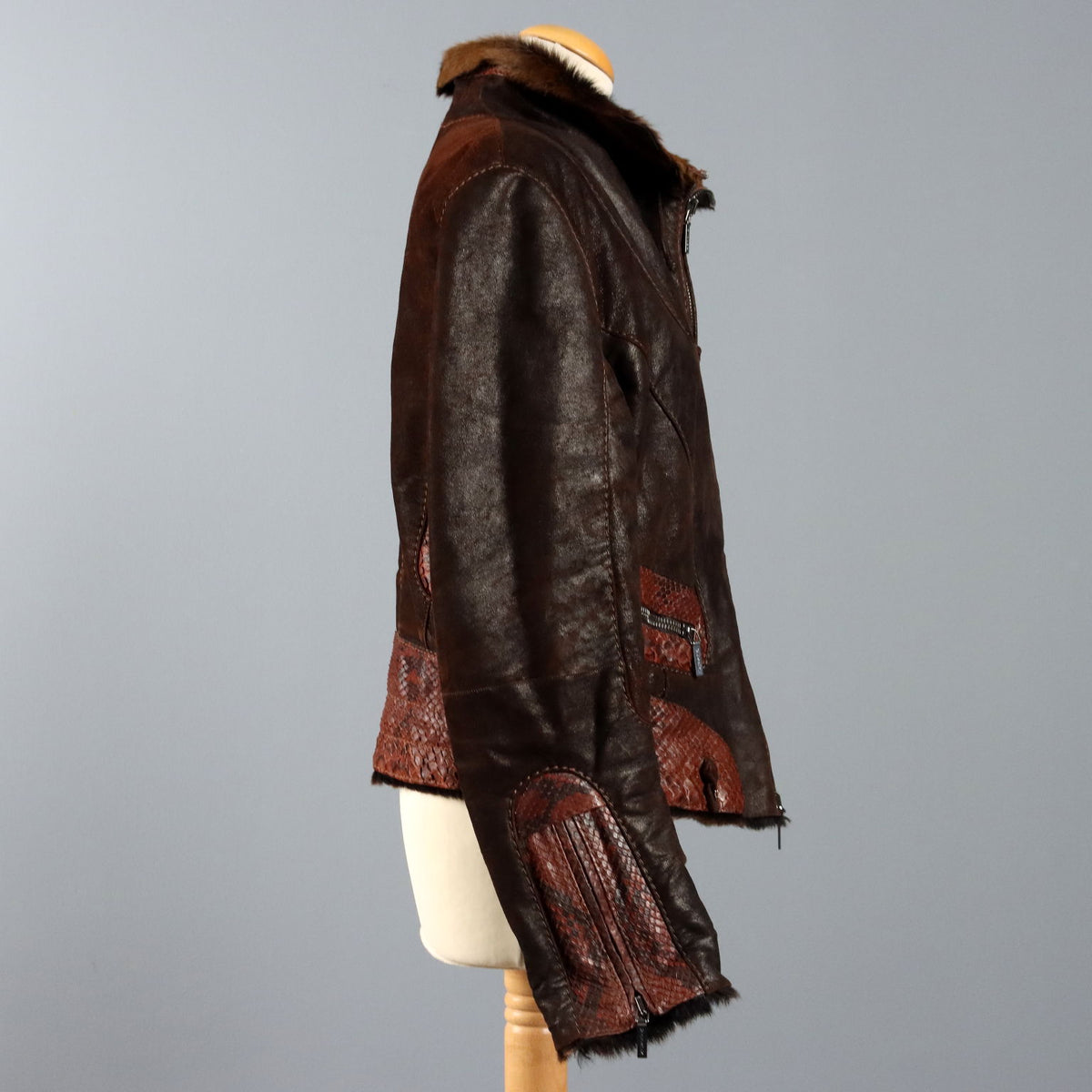 Soft sheepskin jacket with a two-way zipper, two pockets, and leather inserts. Mabrun is an Italian company founded in the...