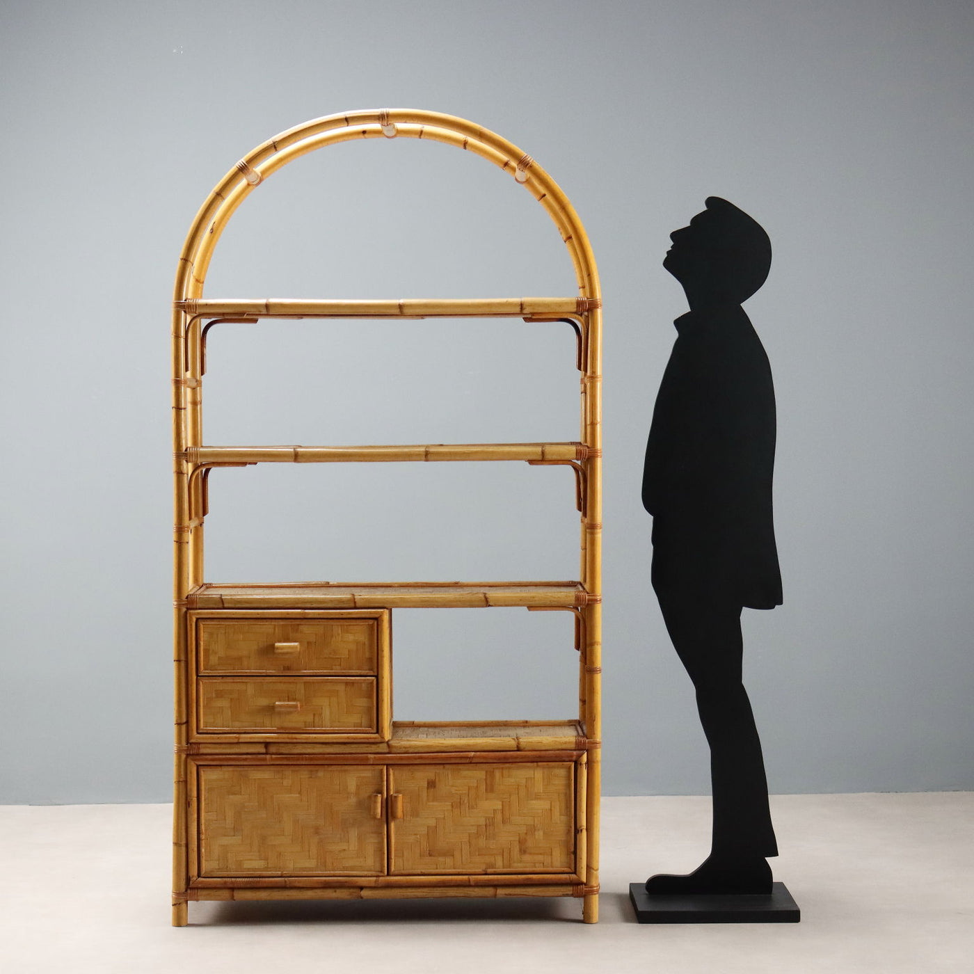 Vintage Bookcase Bamboo Doors Drawers Design Italy 1980s