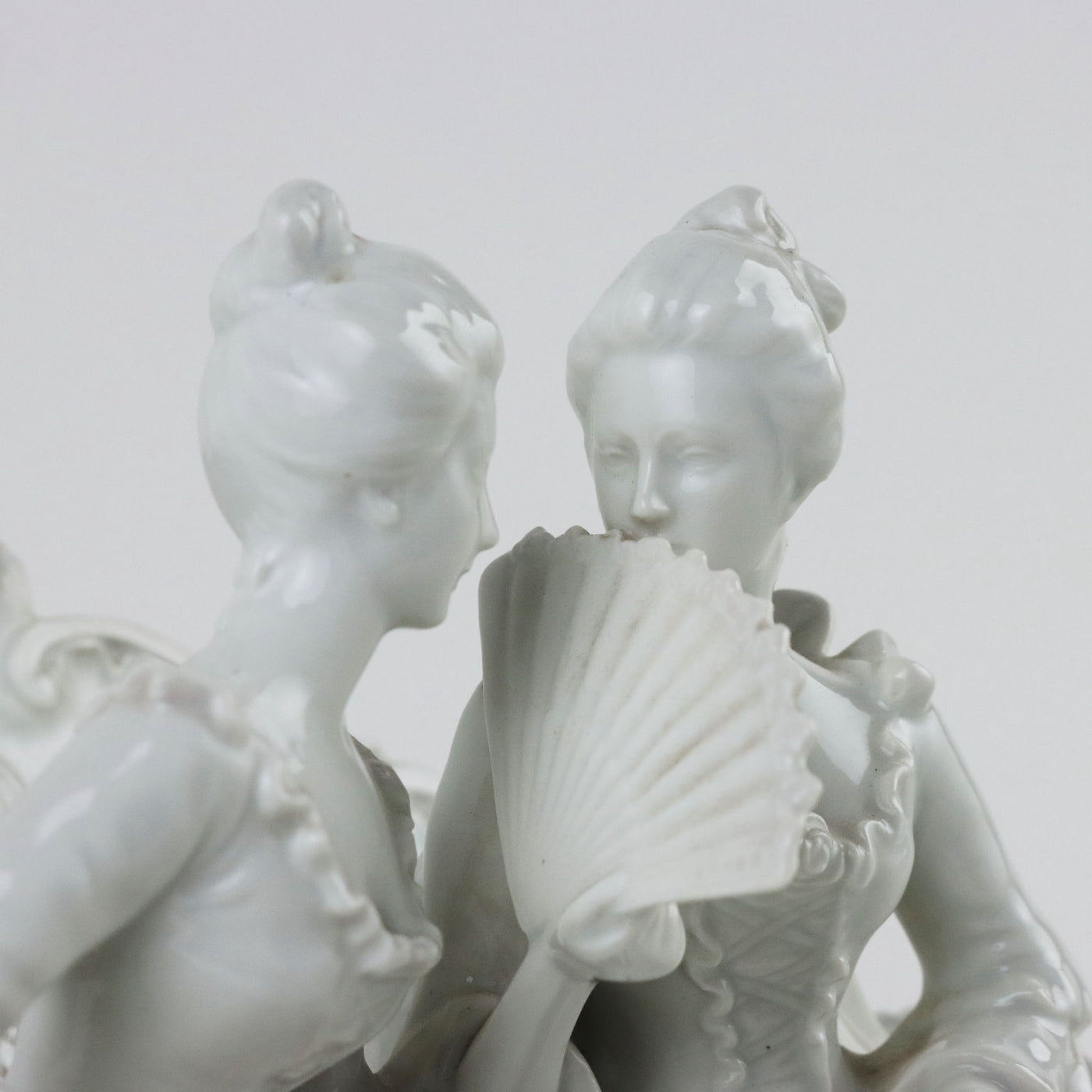 White porcelain sculptural group depicting two ladies sitting on the sofa. Under the base the manufacturer's brand. collector's articles, ancient objects, porcelain, ceramics.