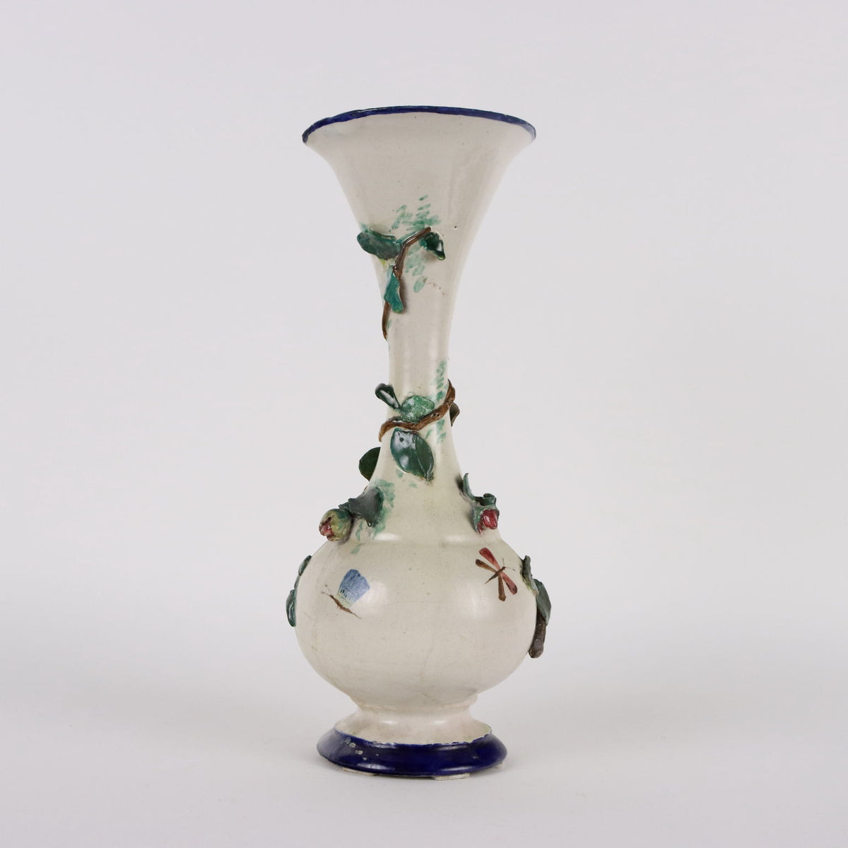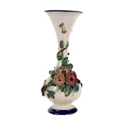 Majolica vase with polychrome relief flowers of Neapolitan manufacture. Brand under the base: G. B. Napoli. collector's articles, ancient objects, porcelain, ceramics.