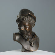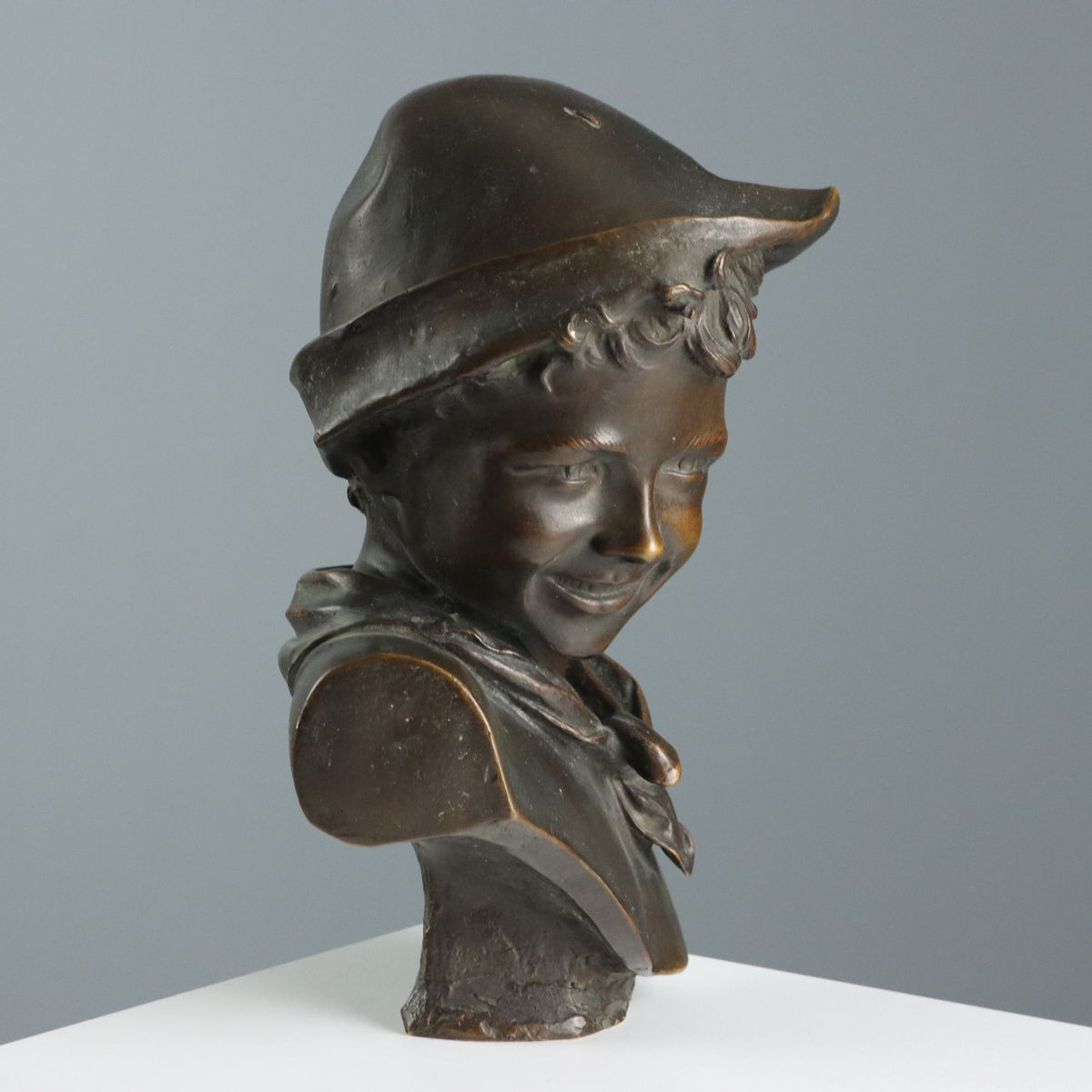 Bronze sculpture depicting the bust of a boy. Unidentified author, probably of Neapolitan manufacture. collector's articles, ancient objects, porcelain, ceramics.