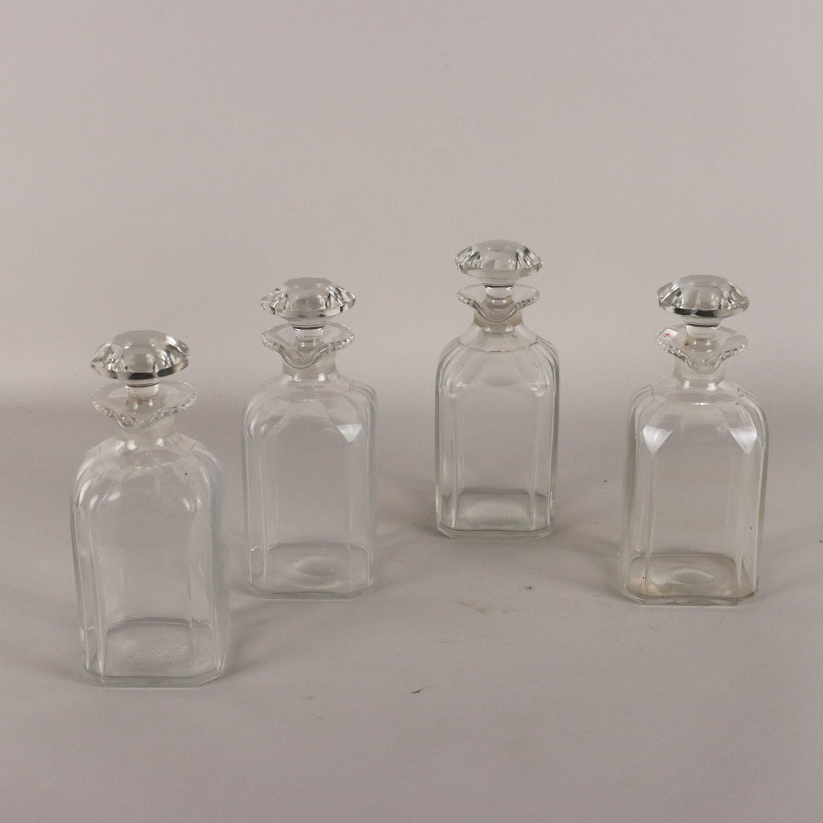 Liquor box in Indian walnut with brass handles and profiles. Coeval lock marked Bramah Patent. Colorless crystal bottles. Boxes, , collector's articles, ancient objects, container.