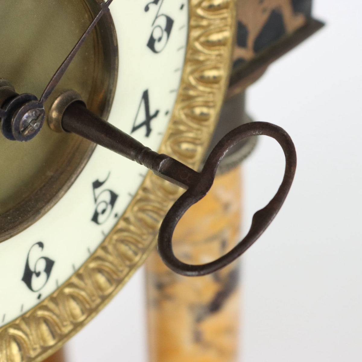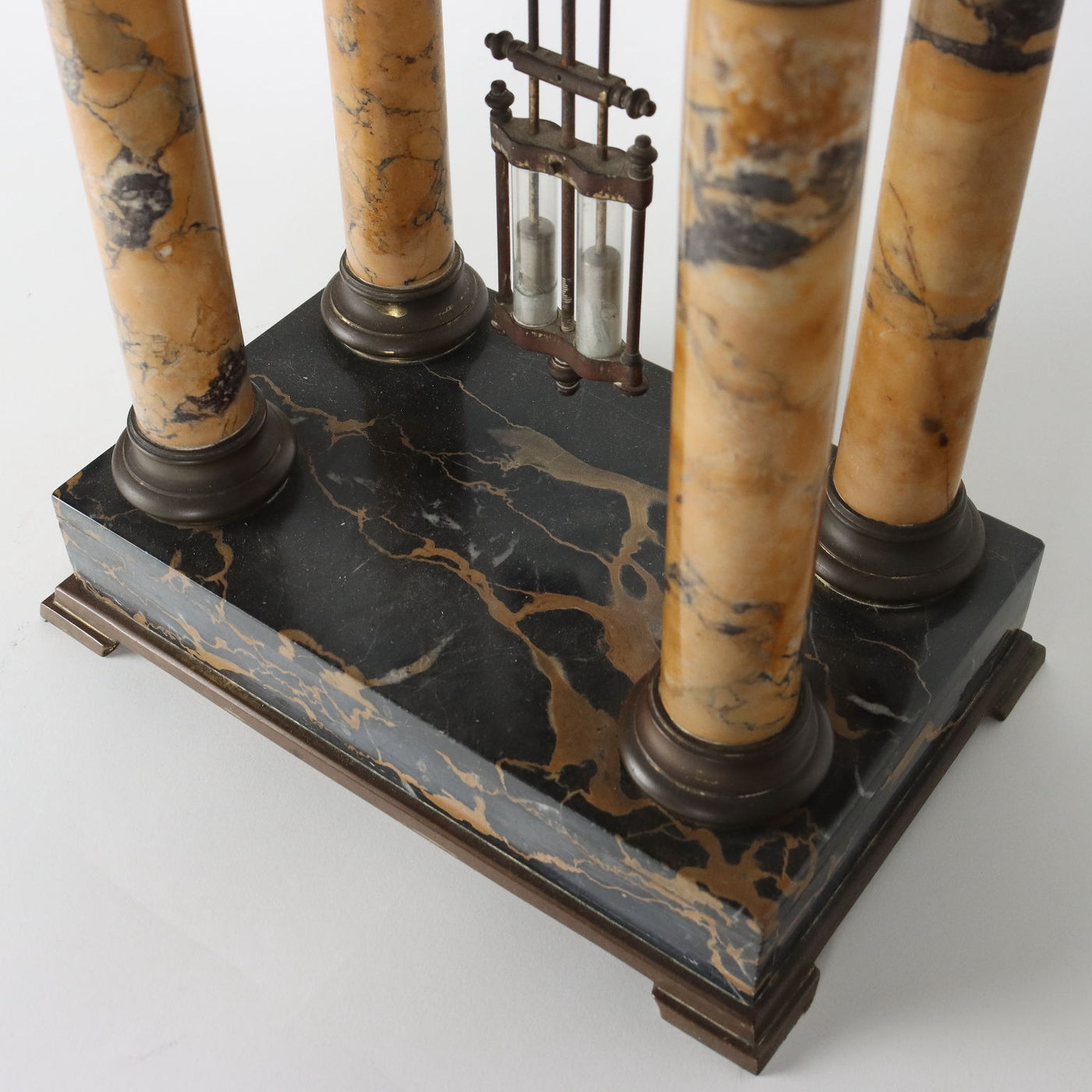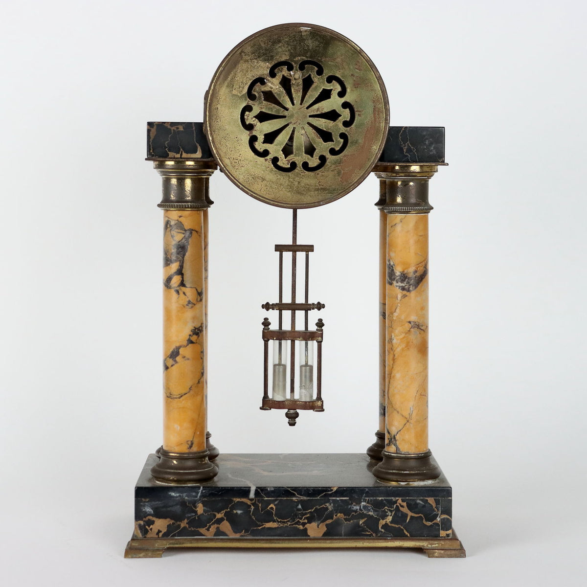 Ancient Temple Shaped Clock '800 Marble Gilded Bronze Objects