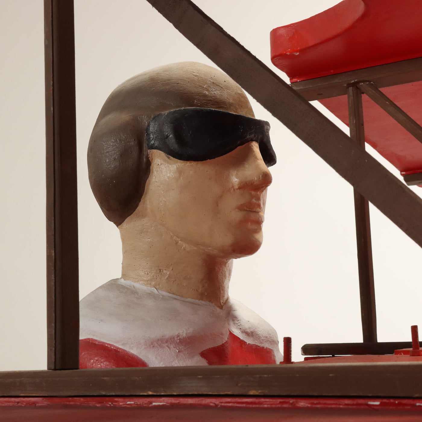 Airplane model with figure of Manfred Albrecht von Richthofen, known as The Red Baron. In painted polystyrene and wooden supports. Ancient objects, , collector's articles, candle-holder.